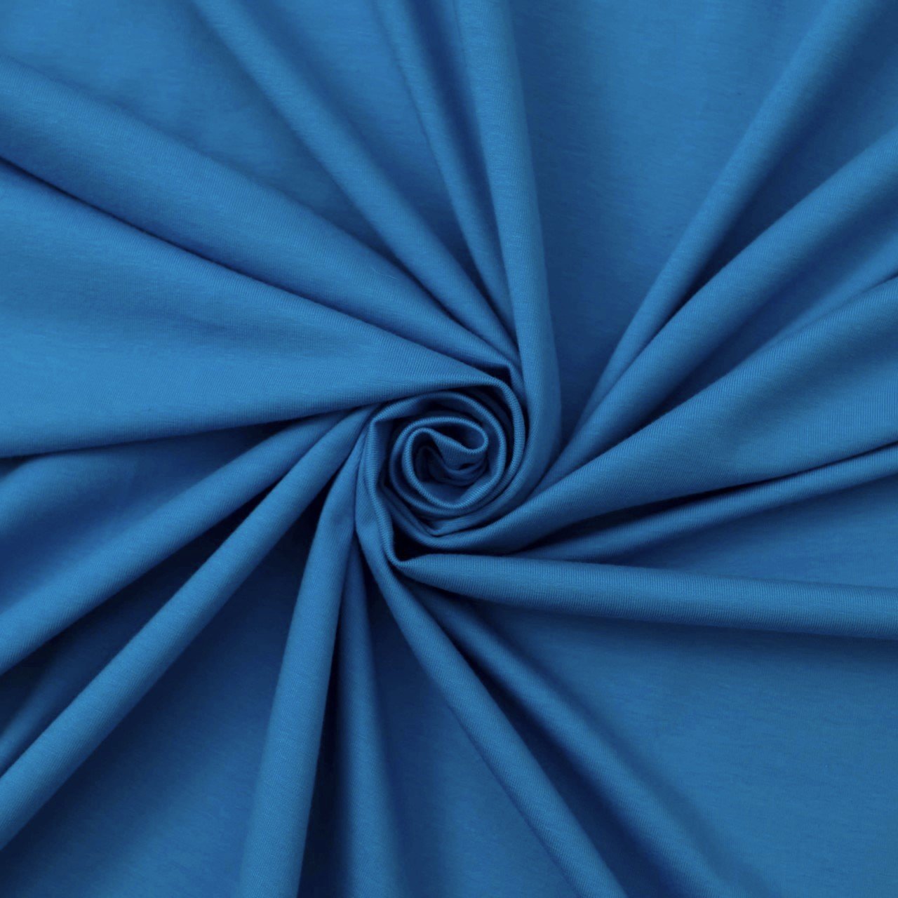 Craft vibrant wardrobe essentials with our Cyan OEKO-TEX Certified Perla Knit, a premium 95% cotton/5% spandex blend that combines rich color with exceptional performance. This Turkish-made fabric features a versatile 6.19 oz weight with superior 4-way stretch, making it ideal for everything from basic tees to fashion-forward designs. The striking cyan hue offers bold saturation while the OEKO-TEX certification ensures safety for sensitive skin. Perfect for the Union St. Tee, Lane Raglan, or stylish bodysuits like the Megan Nielsen Rowan, this 59" wide knit provides excellent recovery and drape. Whether you're refreshing your basics collection or experimenting with twist-front designs, this high-quality jersey delivers professional results with every stitch.