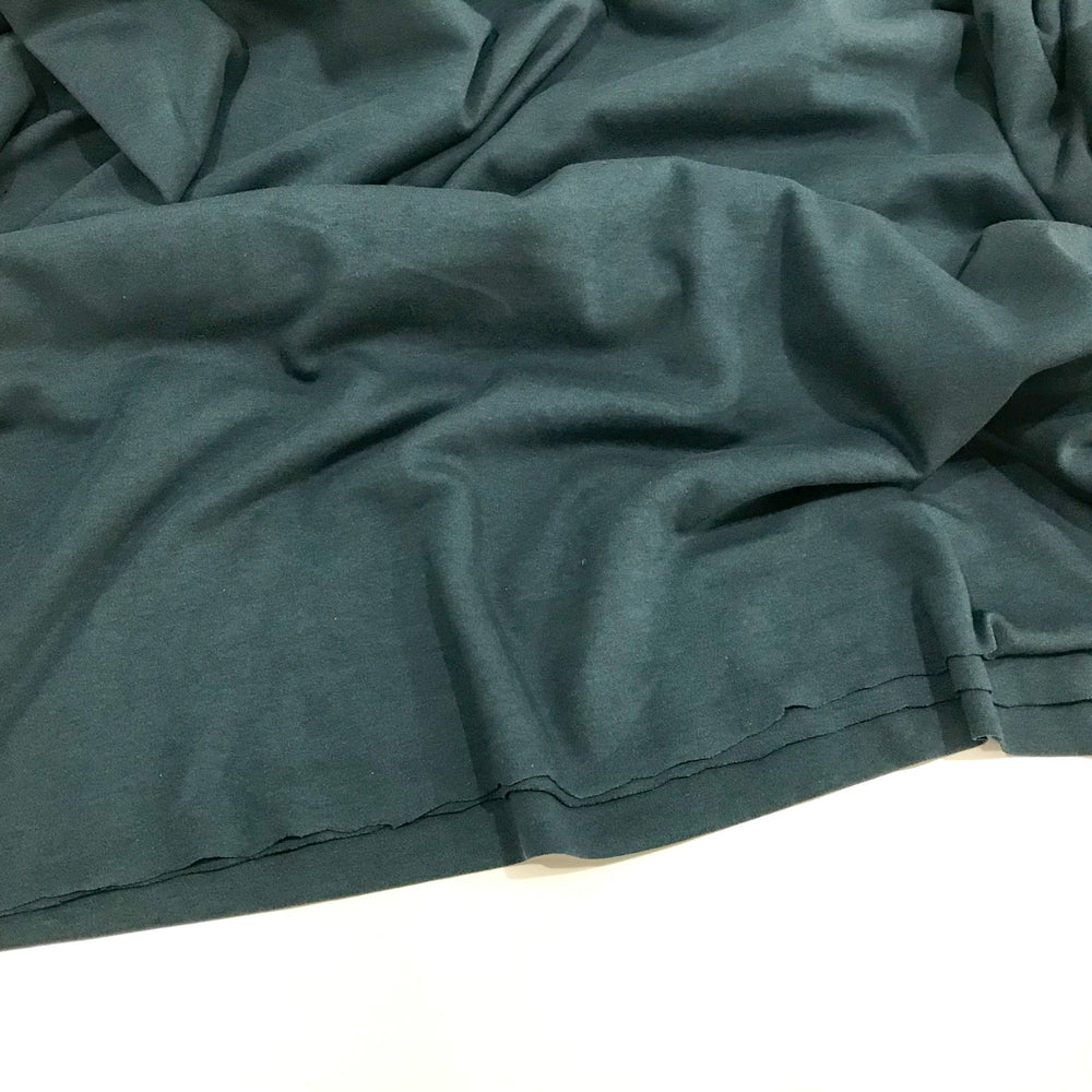 Create luxurious wardrobe staples with our Teal Cotton Modal Jersey, a premium knit that blends 57% cotton, 38% modal, and 5% elastane for exceptional comfort and drape. This 7.2 oz medium-weight jersey offers 50% crosswise stretch with excellent recovery, making it ideal for flattering dresses, stylish turtlenecks, comfortable loungewear, and sleek bodysuits. The rich teal color provides sophisticated versatility that transitions effortlessly through seasons, while the modal content delivers silky softness against your skin. Fully opaque with a beautiful drape, this deadstock fabric combines high-end quality with easy care - simply machine wash and enjoy. Perfect for sewing everything from basic tees to elegant draped designs, this limited-availability jersey offers outstanding value for sewists.