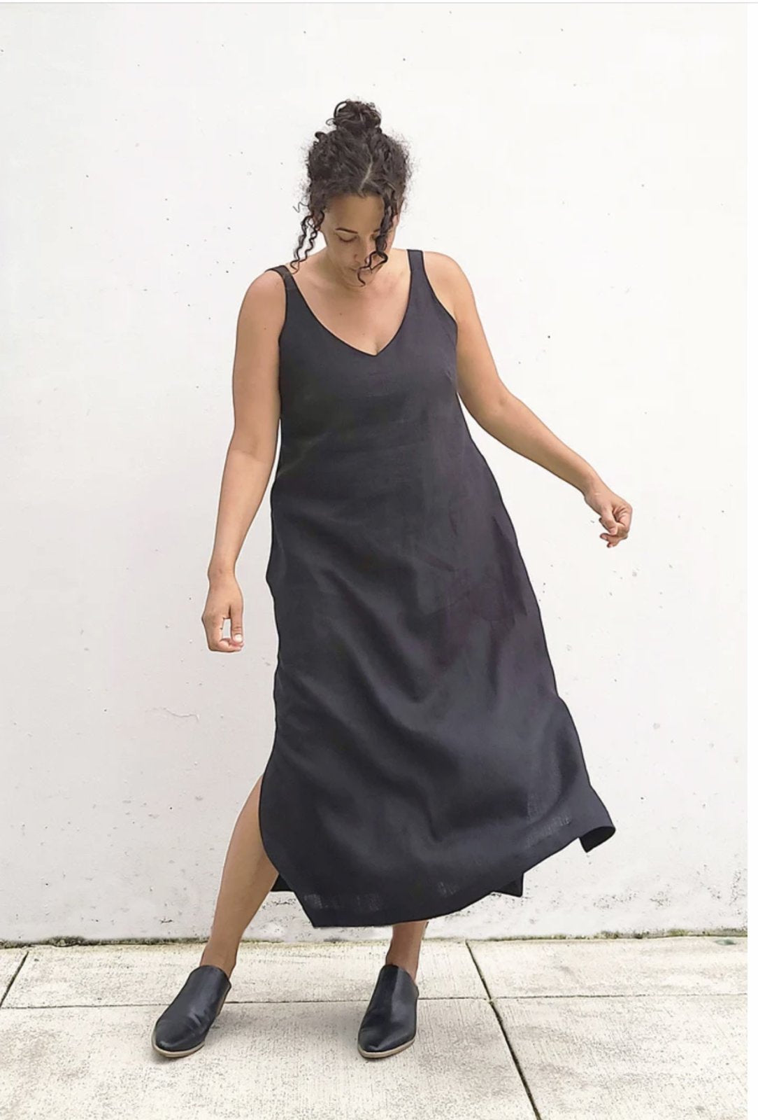 The Sew House Seven Sauvie Sundress – Standard Sizes is a timeless strappy dress designed for comfort, ease, and effortless style. Perfect for hot summer days, this versatile pattern can be worn as a breezy sundress, layered as a pinafore over a t-shirt in cooler months, or even transformed into an elegant evening gown with the right fabric choice. Featuring flattering front and back V-necklines, narrow straps that cover bra straps, and large front pockets, it combines practicality with style. The pattern includes two pocket variations, three hem finishes, two waist finishes, and two hem lengths, giving sewists endless customization options. Best suited for light-weight woven fabrics such as linen, cotton lawn, silk noil, and crepe de chine, this dress comes in sizes 00–20 (bust 31–45 inches).