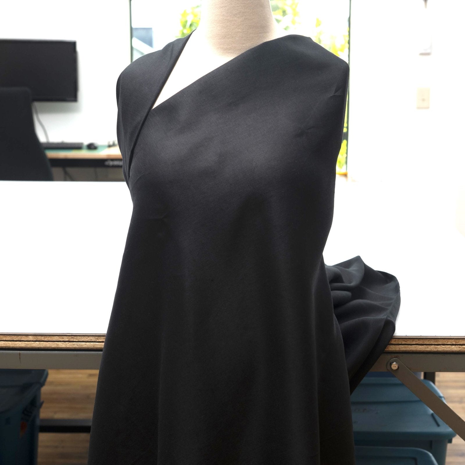 Craft timeless, versatile pieces with our shirt-weight black linen, a premium deadstock fabric that combines luxurious drape with year-round wearability. This light-midweight linen is perfect for creating sleek blouses, tailored trousers, elegant dresses, and lightweight jackets that offer a flattering, silhouette-skimming fit. The rich black hue provides endless styling possibilities, while natural linen fibers ensure breathable comfort in any season.