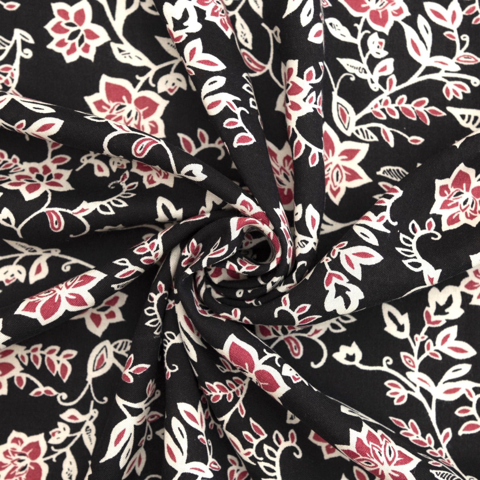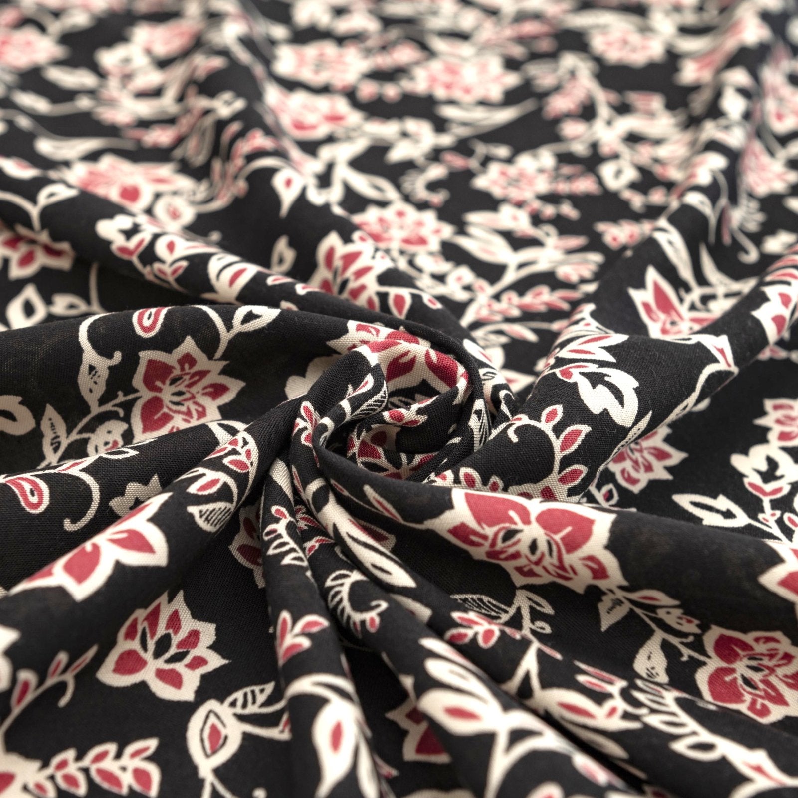 Elevate your handmade wardrobe with this 100% Rayon Challis, featuring a vibrant magenta floral print on a rich black background. The 58-inch width offers ample fabric for flowy dresses, blouses, and skirts, while the ultra-soft, breathable texture ensures comfort in every season. Perfect for bold, romantic styles, this fabric combines dramatic contrast with effortless drape.