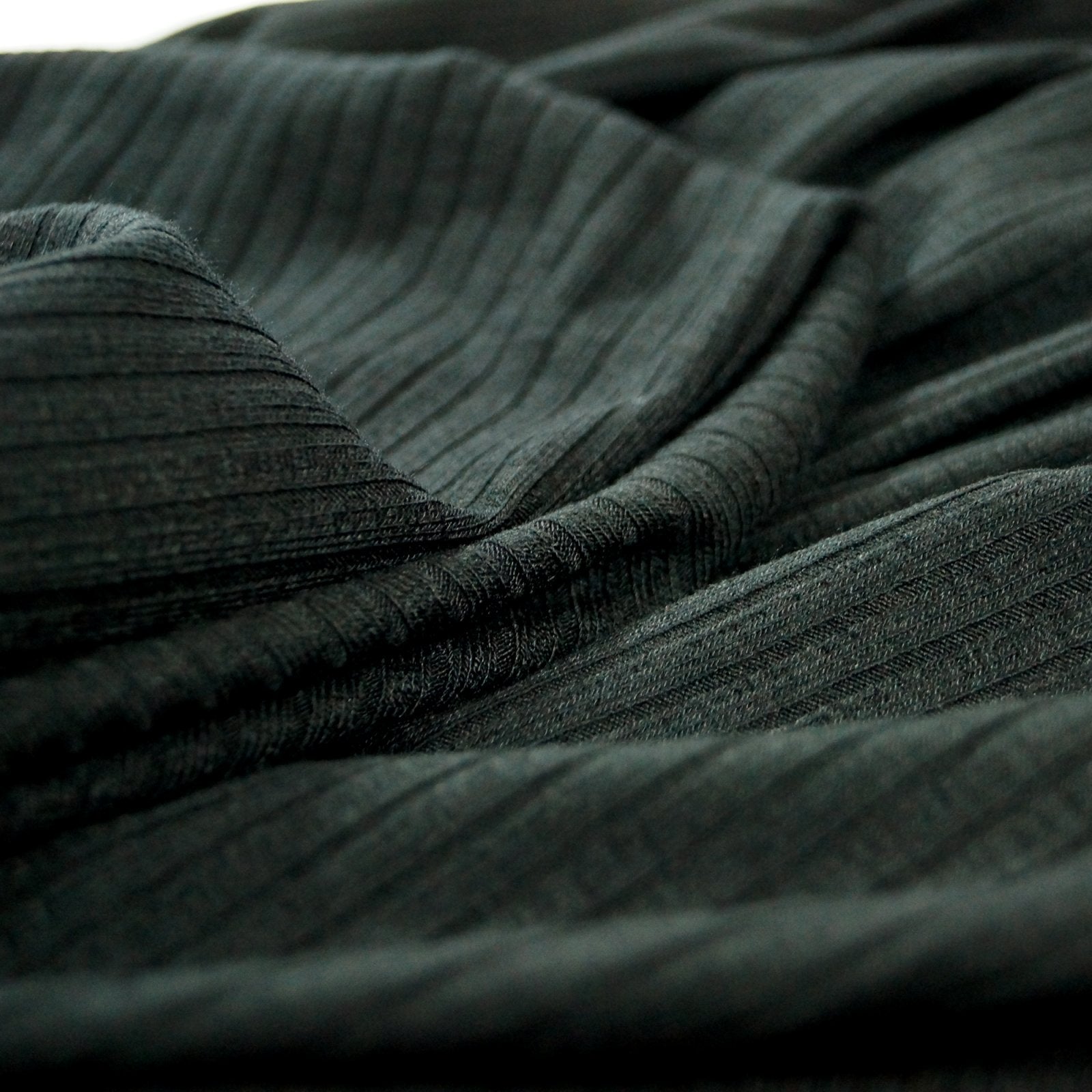 Black Rayon Wide Rib Knit Fabric - 100% Rayon - Stretchy Ribbed Material for Dresses & Bodysuits