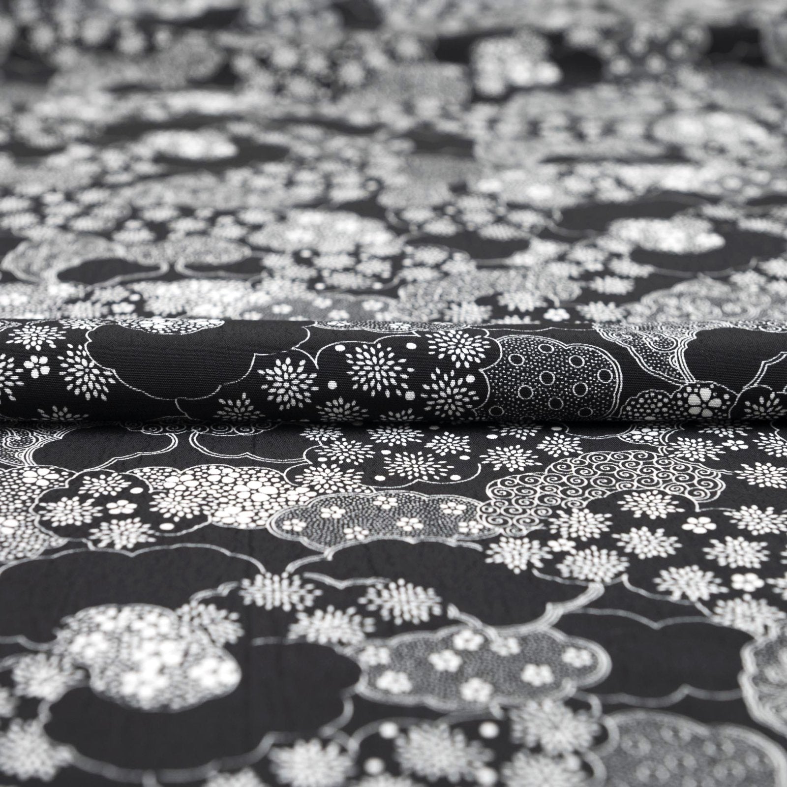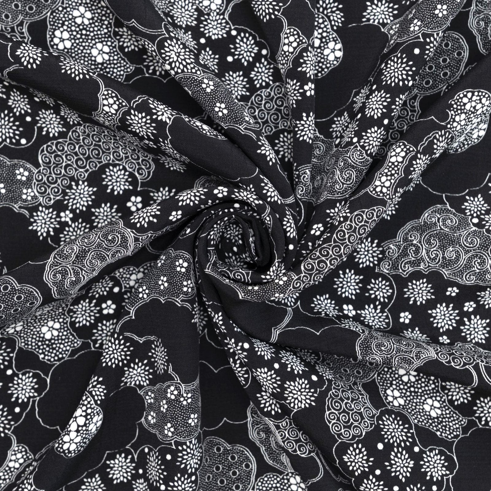 Elevate your handmade wardrobe with this Viscose Challis featuring a mesmerizing black-and-white abstract clouds design. Lightweight and breathable, this fabric offers an ultra-soft drape, making it perfect for flowy blouses, elegant maxi dresses, breezy skirts, and statement scarves. The artistic, cloud-like print adds a touch of modern sophistication to any garment, while the 56-inch width provides ample material for versatile sewing projects.