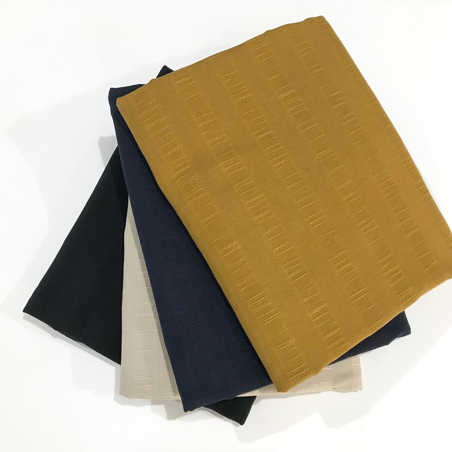 The Textured Stripe Cotton and Linen Blend combines 85% cotton and 15% linen to create a breathable, opaque, and mid-weight fabric that’s perfect for a variety of seasonal projects. With a weight of 5 ounces and a width of 57 inches, this fabric provides the perfect balance of softness and durability. The textured stripes run parallel to the selvedge, allowing for creative dimension in garments like button-up shirts, skirts, relaxed pants, light jackets, and dresses. Available in four classic, season-less colors, this fabric is versatile enough to become a go-to choice in your wardrobe for all year round.