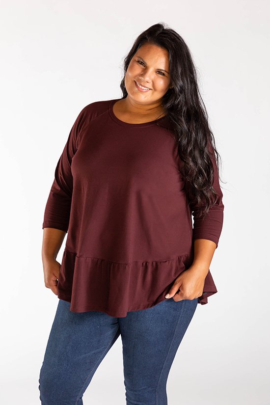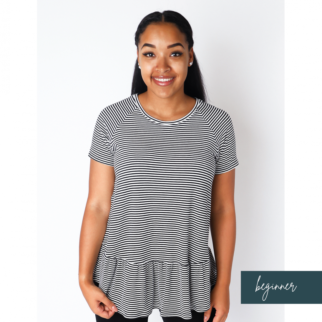 The Chalk & Notch - Waterfall Raglan sewing pattern is a stylish and comfortable knit top or dress designed with a relaxed swing shape. Featuring three versatile views—a cropped top, a ruffle top, and a ruffle dress—this pattern is perfect for creating casual yet chic garments. With three sleeve length options and a flattering ruffle design, the Waterfall Raglan is a must-have for sewists working with stretch knits.
