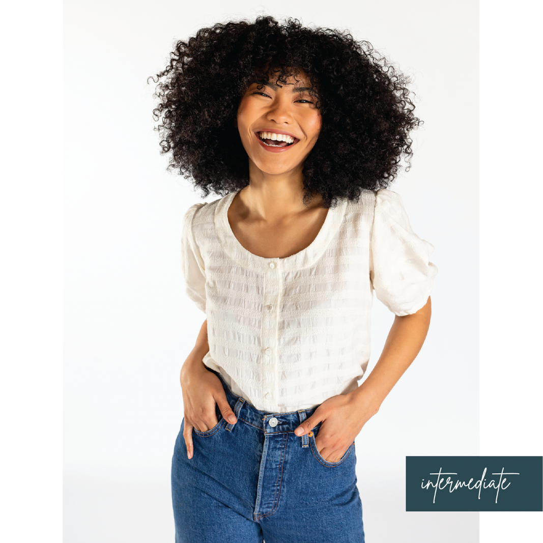 The Chalk & Notch Wren Blouse & Dress pattern is a feminine and versatile sewing pattern featuring a button-front blouse and mini dress with statement sleeves. Perfect for light woven fabrics, Wren is ideal for creating effortless casual or dressy wardrobe pieces.