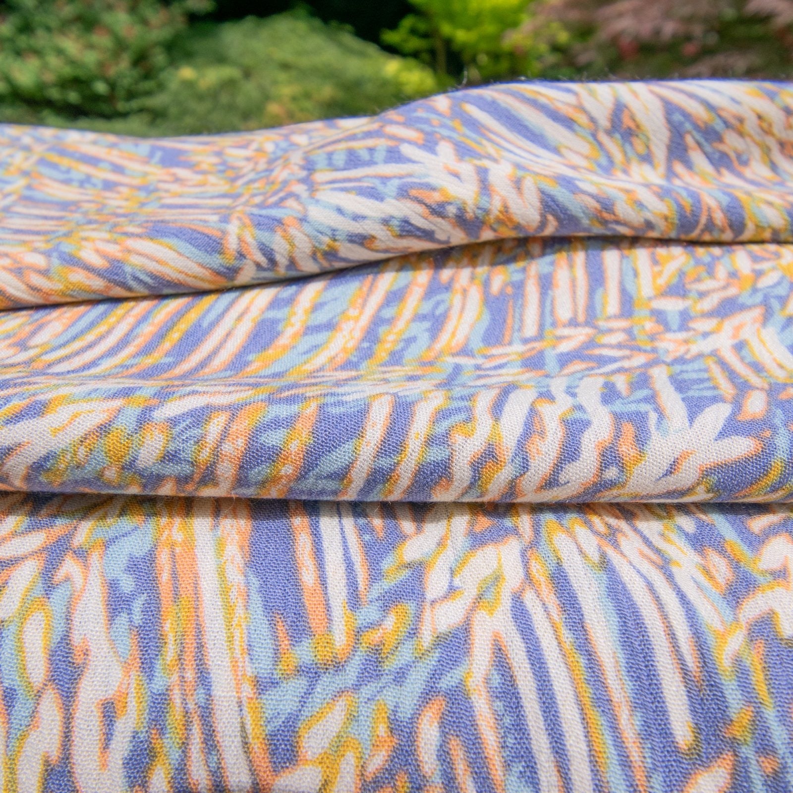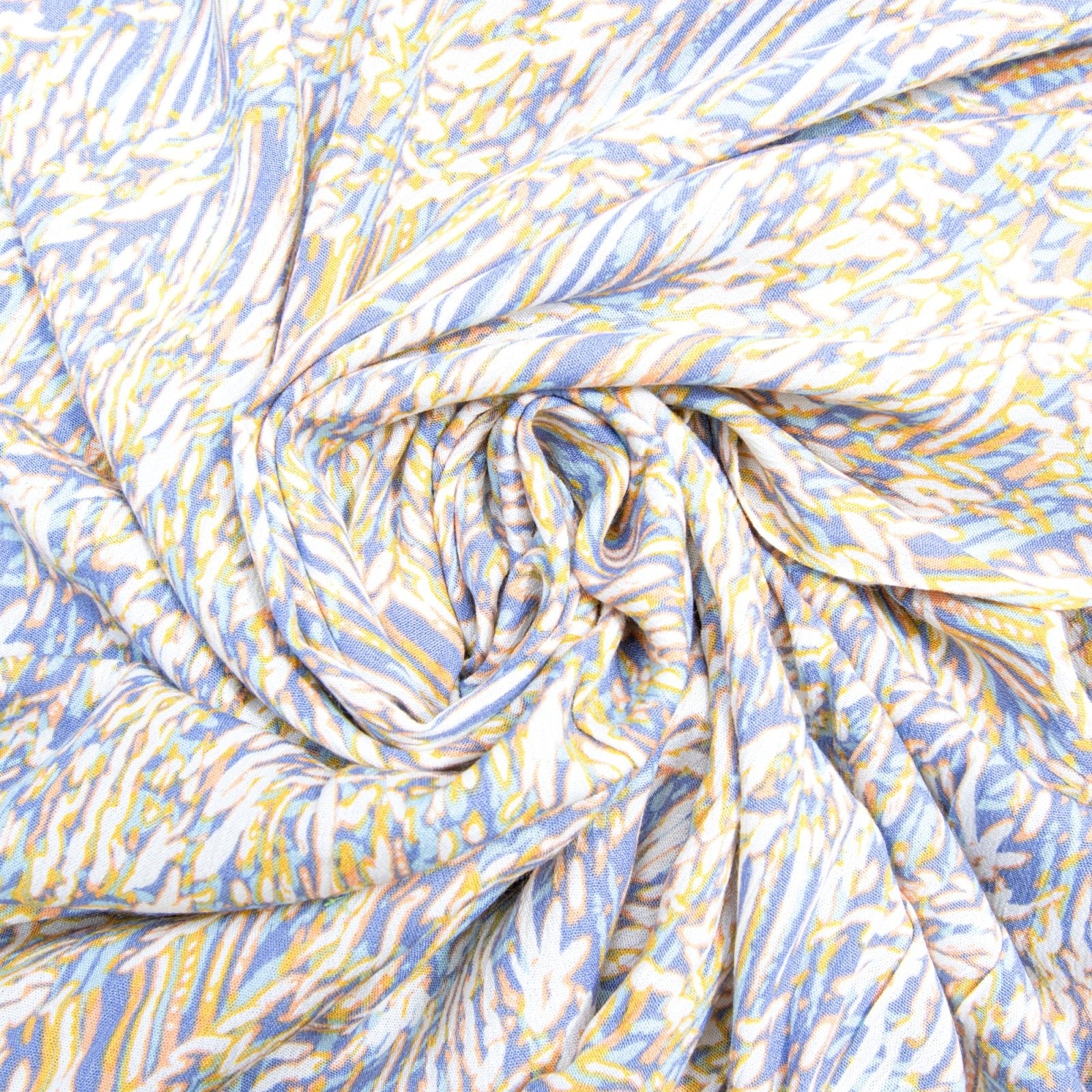 Soft, elegant, and limited in stock, the Rayon Crepe - Blues & Cream Abstract is ideal for fashion designers and DIY enthusiasts seeking premium quality fabric with beautiful drape and vibrant abstract prints. Perfect for creating standout garments with effortless flow.