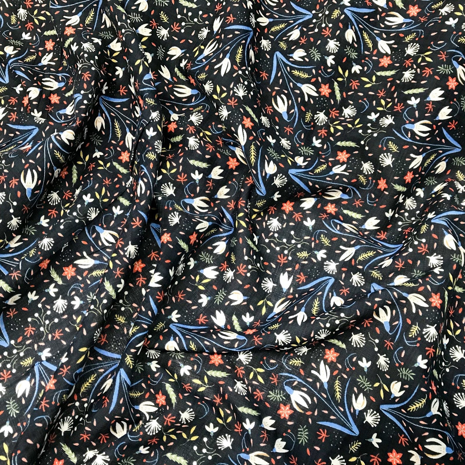 Cotton Viscose Voile Floral Party in Navy lightweight fabric with multicolor floral print