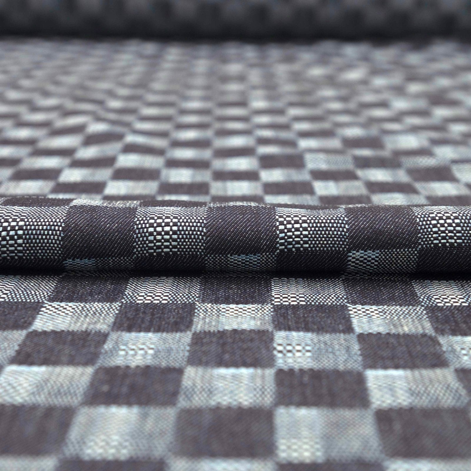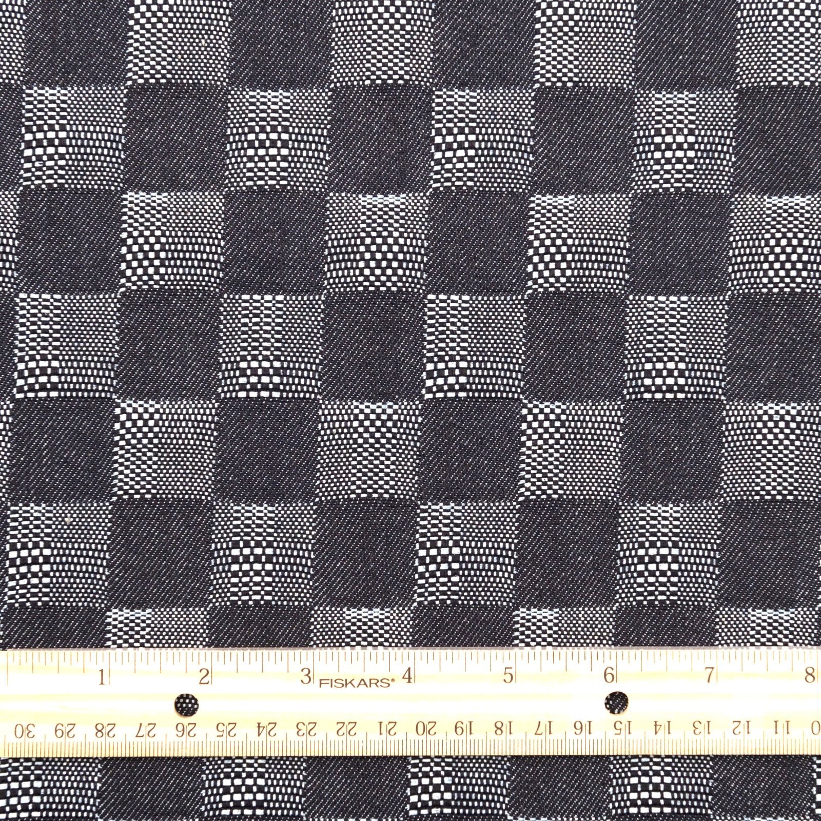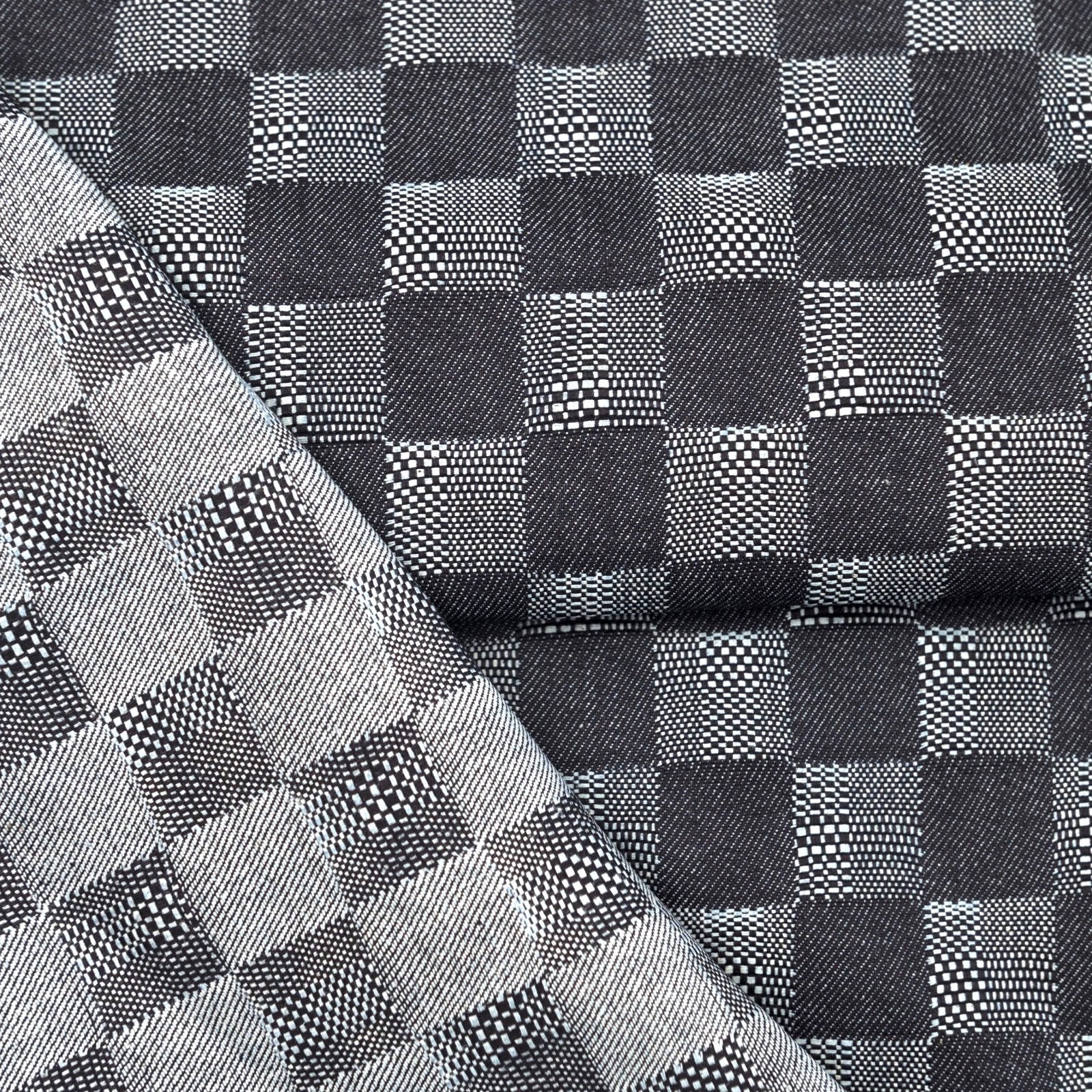 Make a bold statement with this Dakota Patchwork Indigo Denim, a 100% cotton fabric that reinvents classic denim with a geometric dobby weave pattern. At 9.5 oz and 58 inches wide, this medium-weight, non-stretch denim offers a structured yet modern drape, perfect for edgy jumpsuits, statement jackets, and unique pants. The raw indigo finish ensures your creations develop a one-of-a-kind, lived-in patina over time, adding character with every wear. Whether you're crafting high-fashion pieces or standout everyday wear, this textured denim turns garments into wearable art.