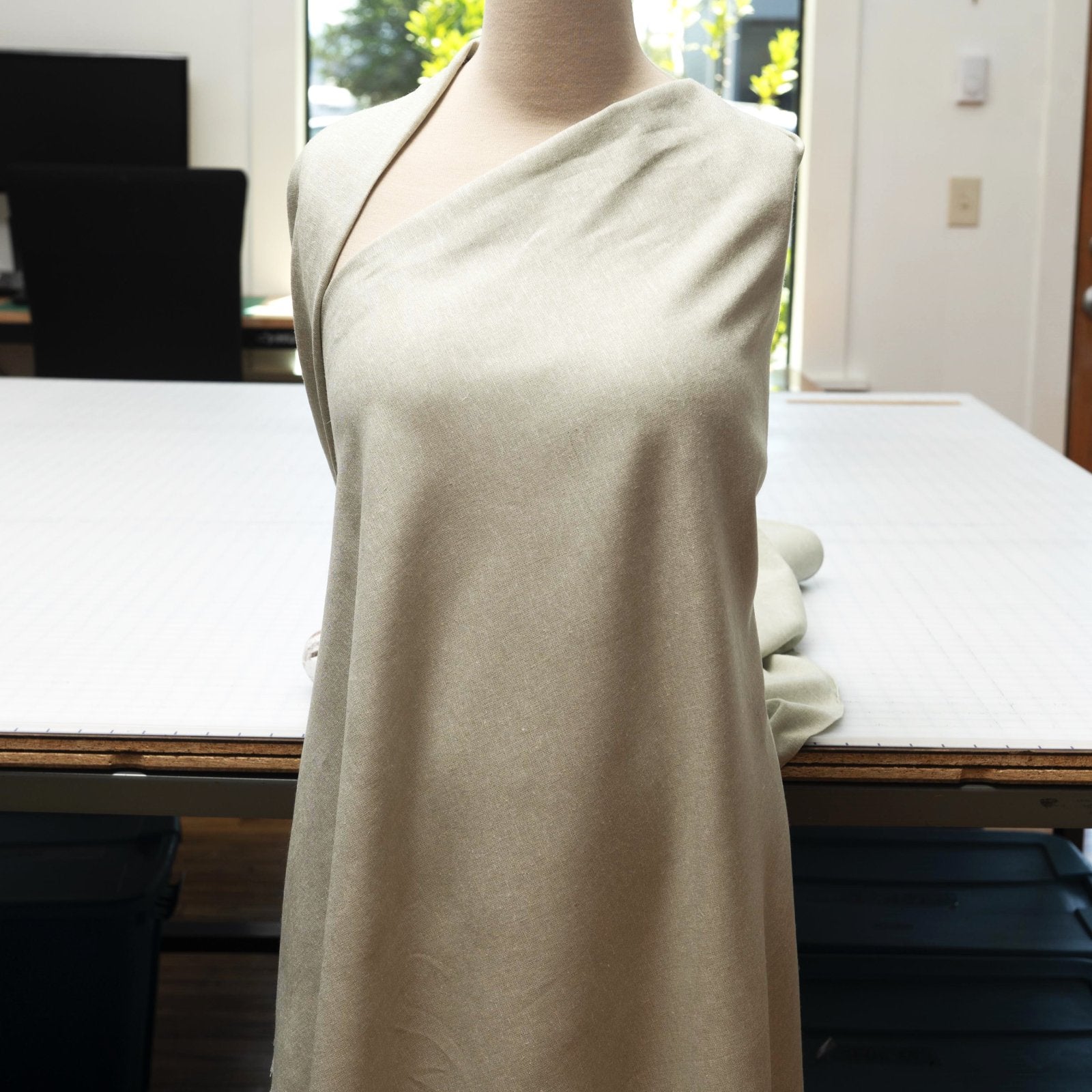 The Linen/Rayon Yarn Dye - Moss fabric is a breathable, lightweight textile that blends the natural texture of linen with the smoothness of rayon. Its yarn-dyed finish introduces a visually appealing variation in color, ideal for year-round garment making. A favorite among designers and sewing enthusiasts, this moss-hued fabric is perfect for creating elegant, comfortable apparel.