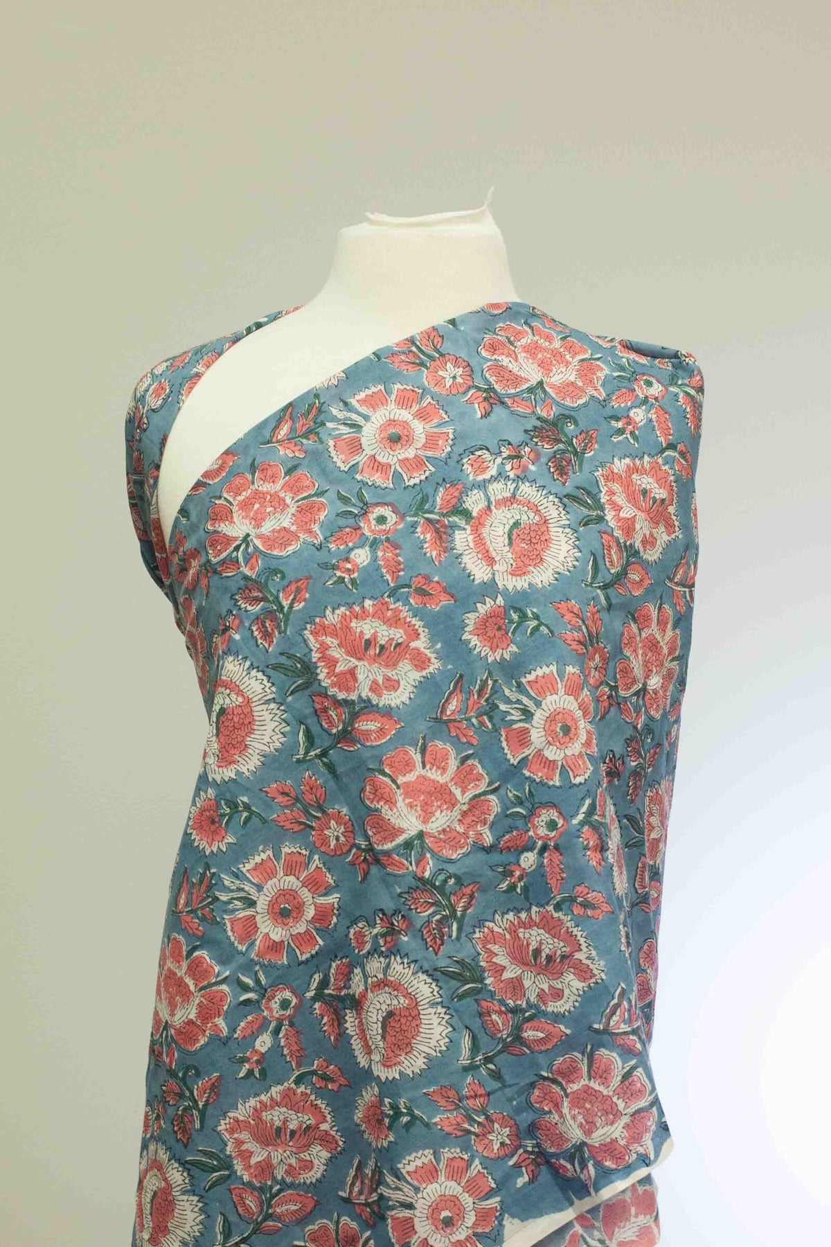 Make a vibrant statement with this hand-printed 100% Indian cotton fabric, featuring oversized soft-orange florals against a striking slate blue background. This bold, modern botanical print brings fresh energy to your handmade wardrobe, perfect for creating eye-catching going-out dresses, flirty tops, or statement skirts. The semi-translucent lightweight weave (70g per meter) offers exceptional drape and breathability, making it comfortable to wear and easy to sew. With its smooth handfeel and artistic design, this fabric is ideal for fashionistas who love unique prints with personality.
