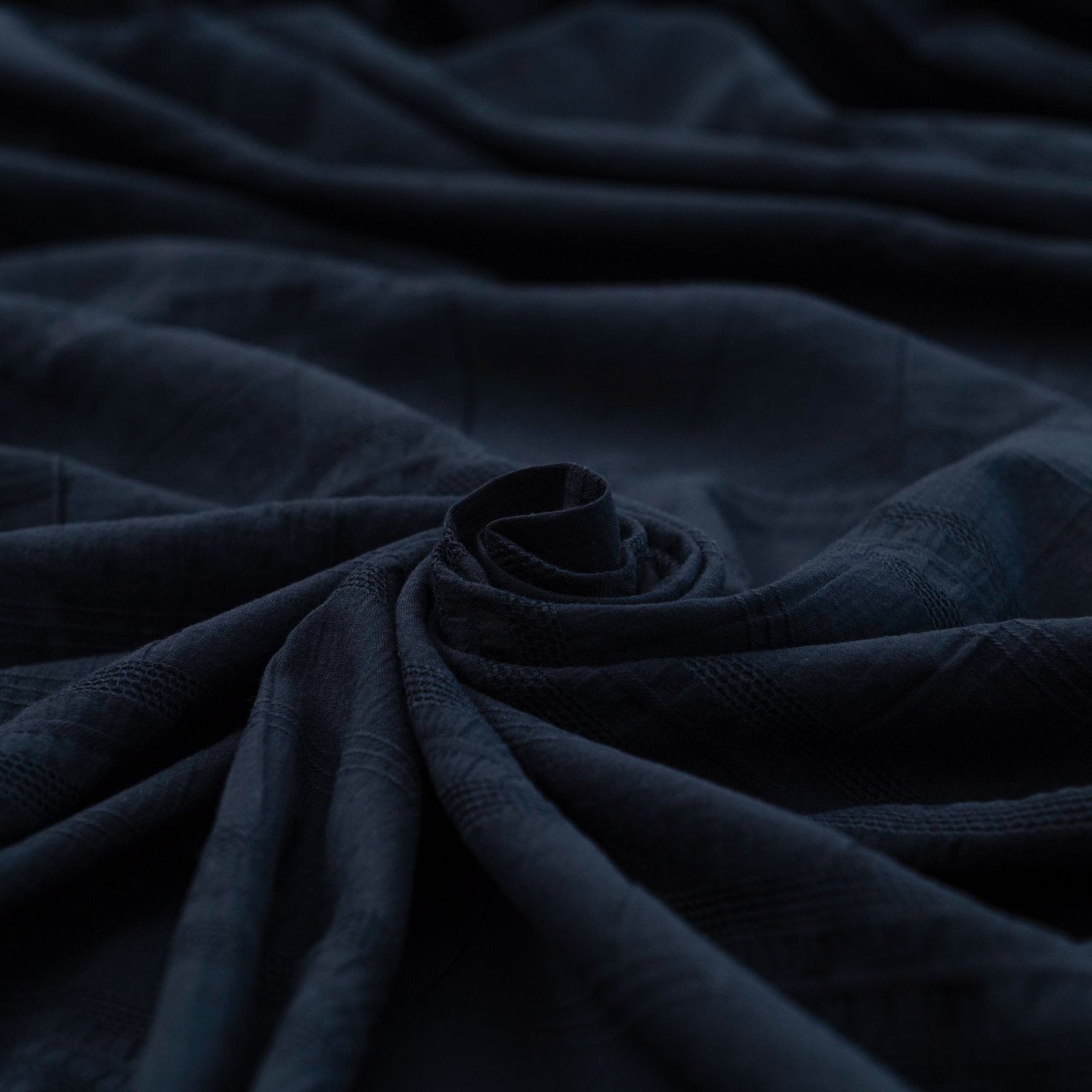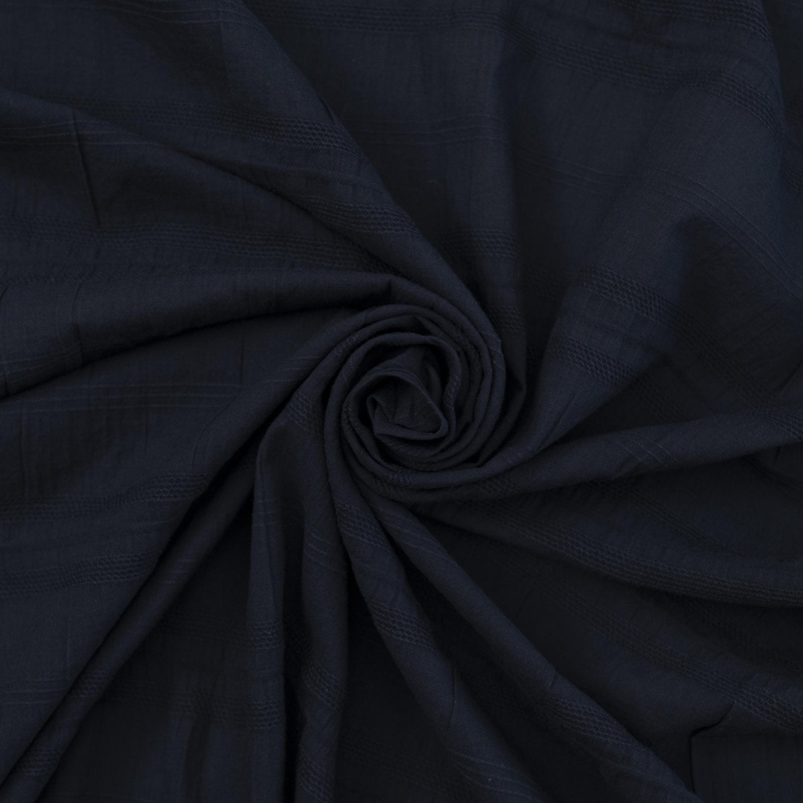 Isabel Crinkle Strata, Cotton - Navy is a premium, lightweight cotton fabric featuring a crinkled texture and striped stitch design. Perfect for sewing modern and timeless garments, this fabric delivers comfort, style, and effortless elegance for a variety of projects.