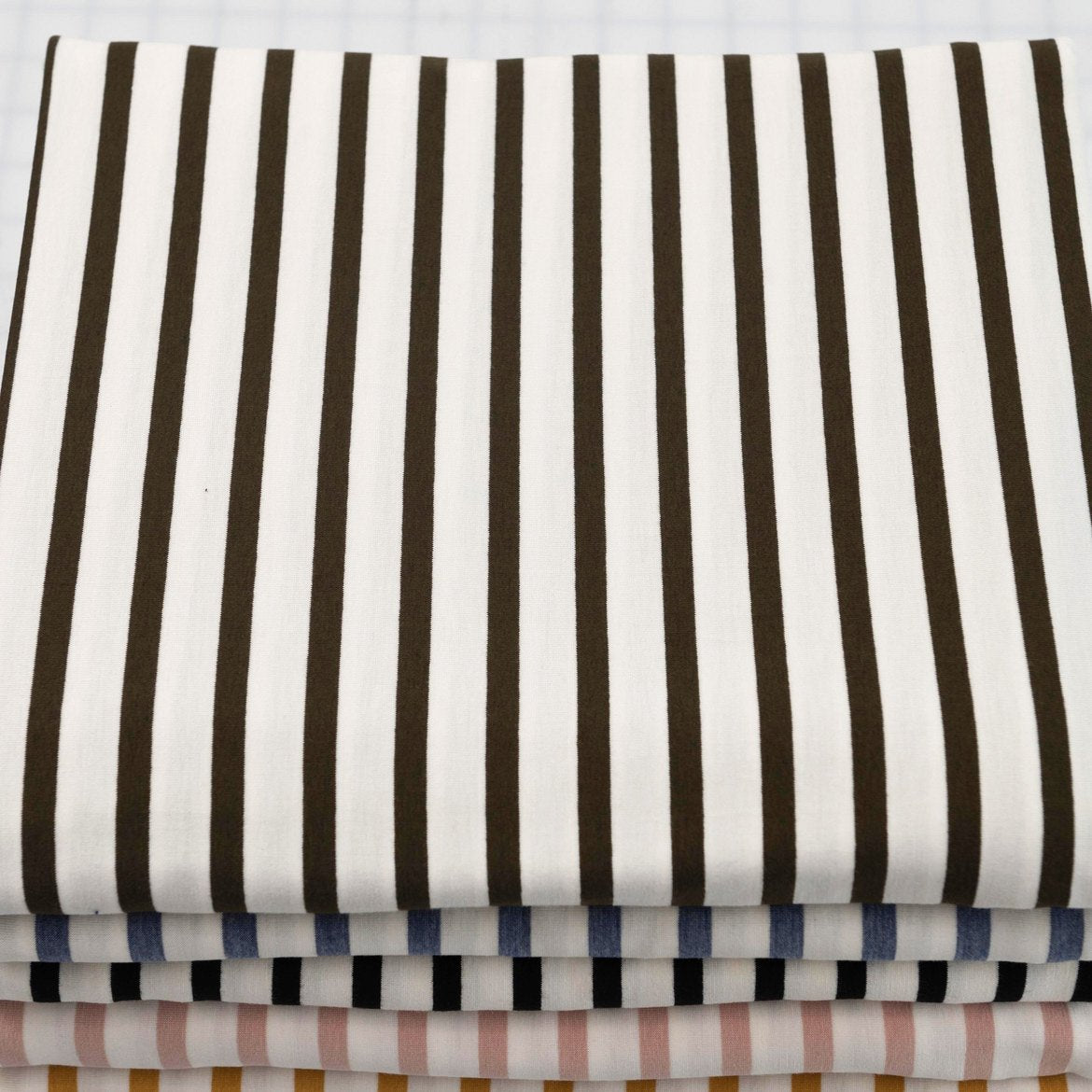Indulge in the ultra-soft, fluid drape of our Rayon Jersey in Stripes, a 95% rayon, 5% spandex blend that feels like butter against your skin. This lightweight (under 6 oz) fabric offers 55% cross-grain and 40% lengthwise stretch, making it perfect for flowy dresses, wrap tops, luxurious robes, and cozy pajama sets. The seven vibrant stripe options add playful elegance to any project, while the 60" width ensures ample fabric for creative designs.