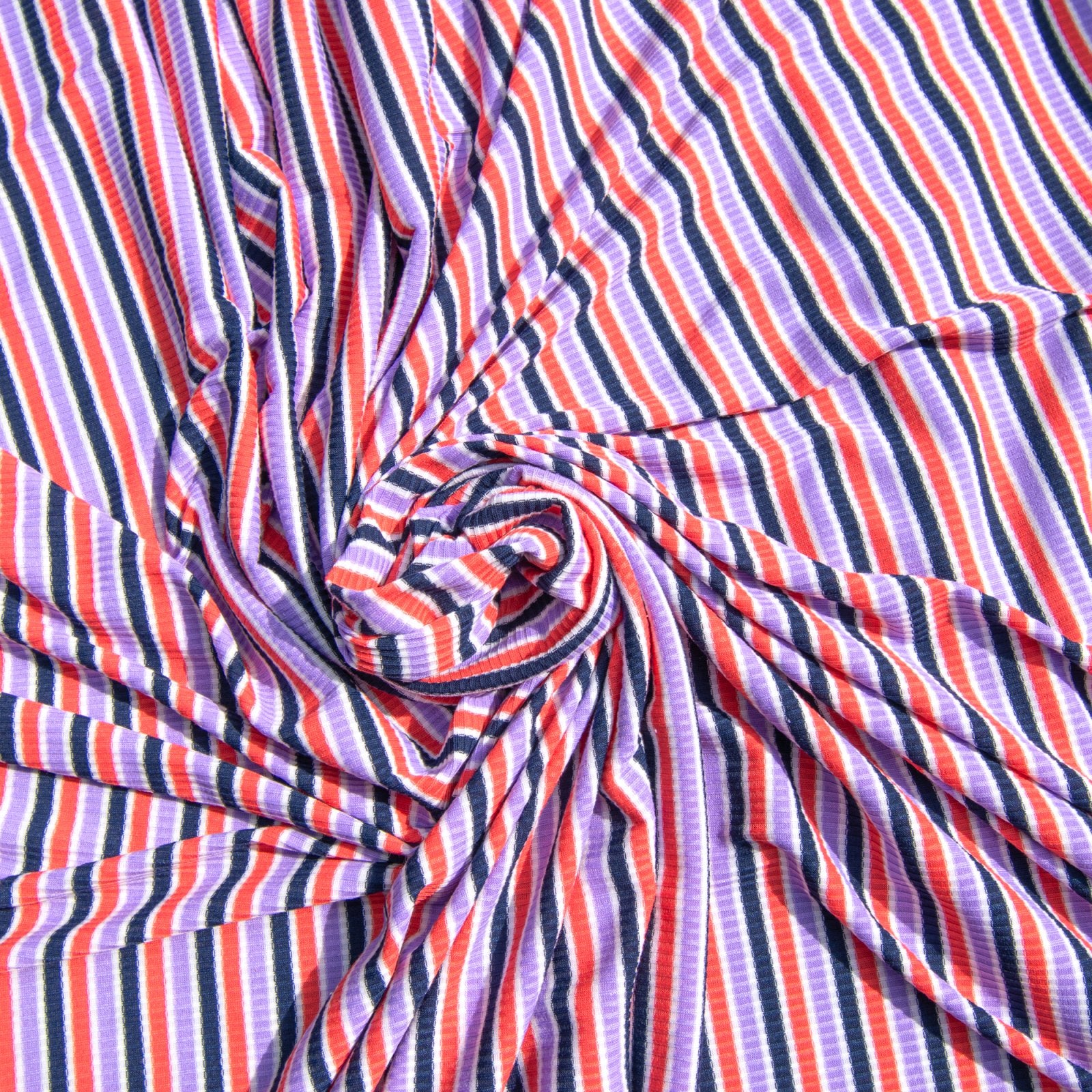 Embrace vibrant style with our Multi Stripe Sunset Tones Rayon Rib Knit, a 97% Rayon, 3% Elastane blend that offers silky softness and excellent stretch recovery (50% crosswise, 20% lengthwise). The 55-inch width provides ample fabric for lounge bras, camisoles, dresses, and stylish layering pieces, while the sunset-inspired stripes add a bold, playful touch to any wardrobe. Perfect for scrap-busting projects like the Sommar Camisole or daywear essentials, this deadstock gem balances breathable comfort with head-turning color.