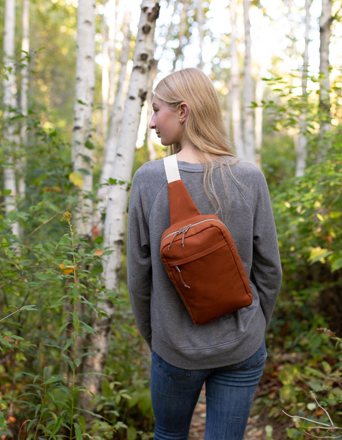 With finished dimensions of 7” wide x 3” deep x 11” tall, this sling is the perfect size for carrying your essentials. Whether you choose canvas, quilting cotton, or lightweight canvas, this pattern is versatile and customizable. The addition of a fabric strap or cotton webbing and hardware like D-rings and swivel snaps completes the look.