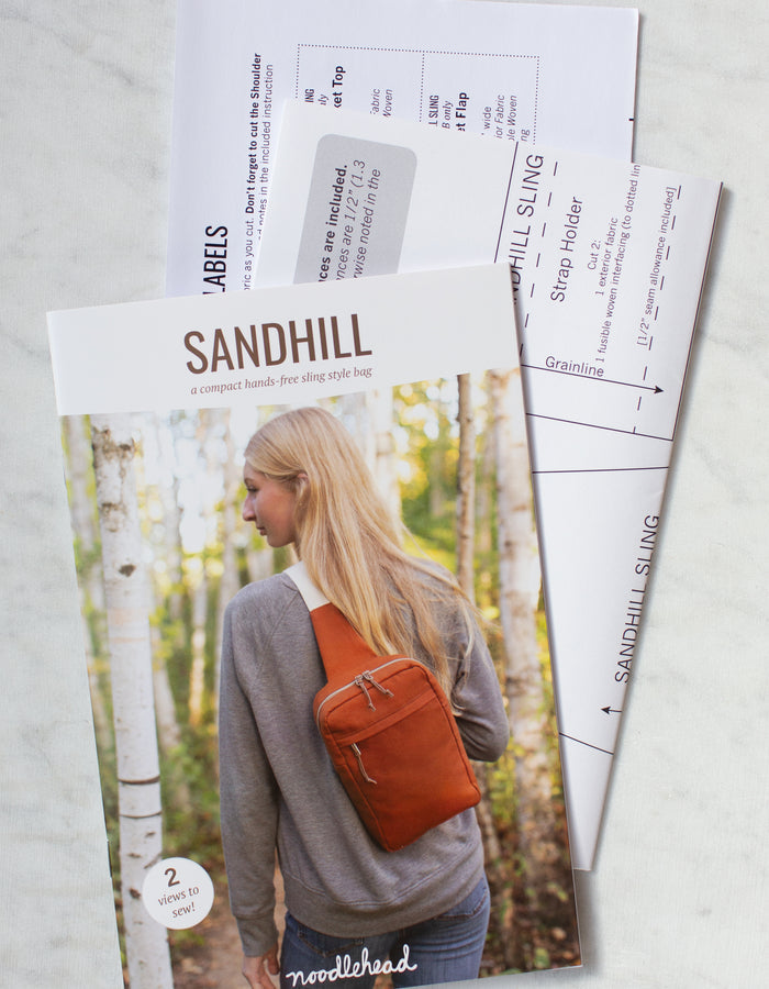 The Sandhill Sling by Noodlehead is a functional and stylish crossbody bag perfect for those looking for an intermediate sewing project. With View A featuring a front pocket and View B showcasing a magnetic snap closure, this sling is designed with practicality in mind. The pattern includes clear instructions for creating an exterior fabric bag with a durable fusible woven interfacing, giving the bag structure.