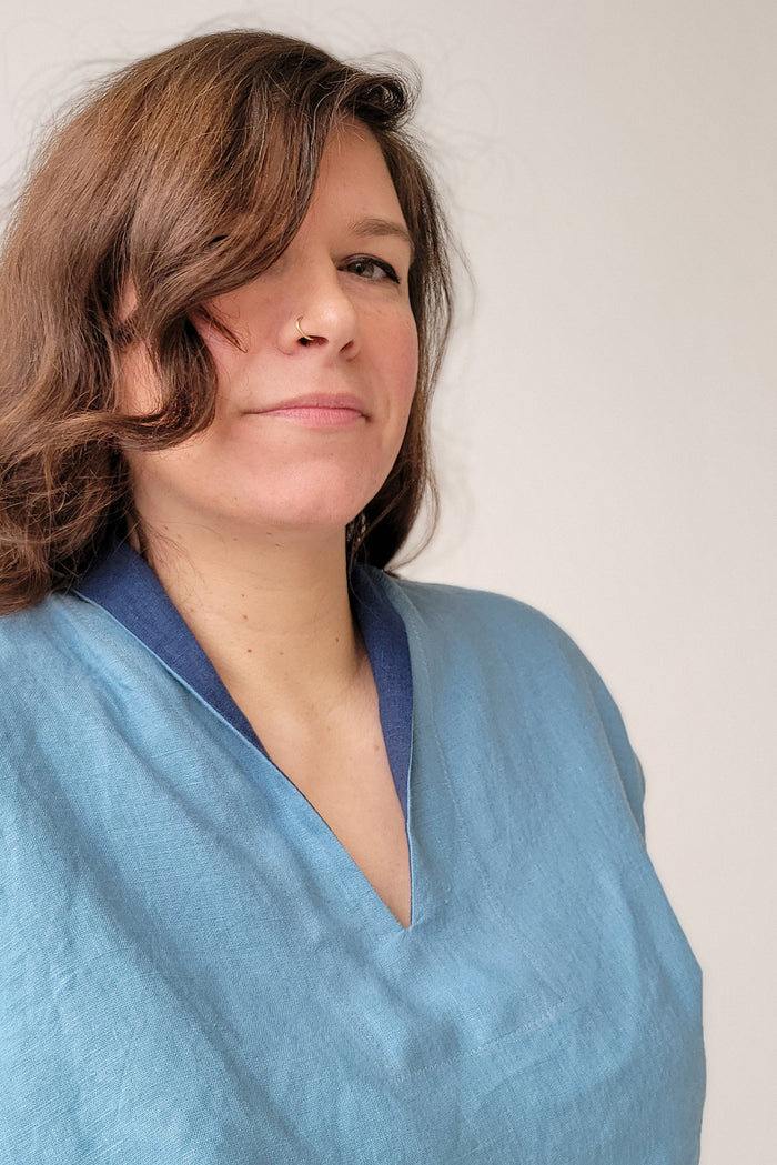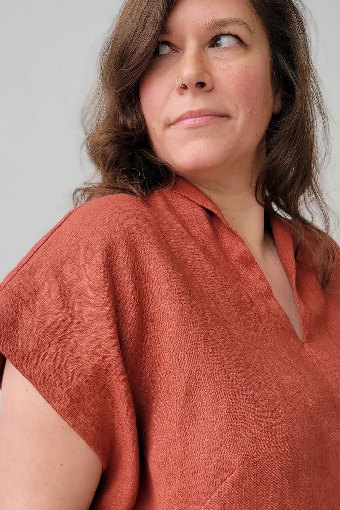 Perfect for pairing with high-waist pants or skirts, the Revel Topper can be dressed up or down depending on your fabric choice and finishing details. You can customize it further with color blocking, pattern mixing, or embroidery to create a truly unique piece. Designed for fluid, woven fabrics like linen, silk charmeuse, and Ecovero challis, this pattern gives you the opportunity to create a top with lovely drape and flow.
