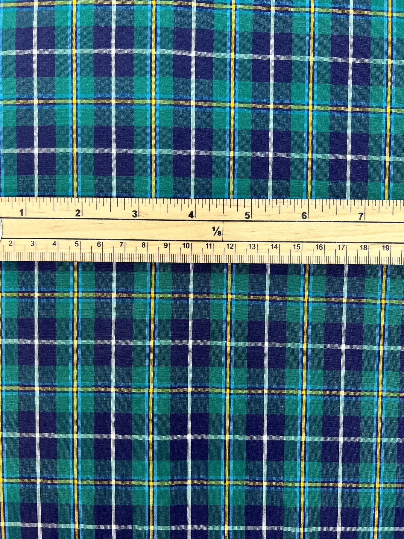 This Cotton Shirting - Green and Blue Plaid fabric is a must-have for fashion-forward individuals who appreciate quality and style. Its breathable and comfortable nature makes it suitable for various uses, from creating everyday shirts to more stylish blouses. Designed in Italy, this fabric brings together durability, softness, and a timeless design. A perfect addition to your fabric collection!