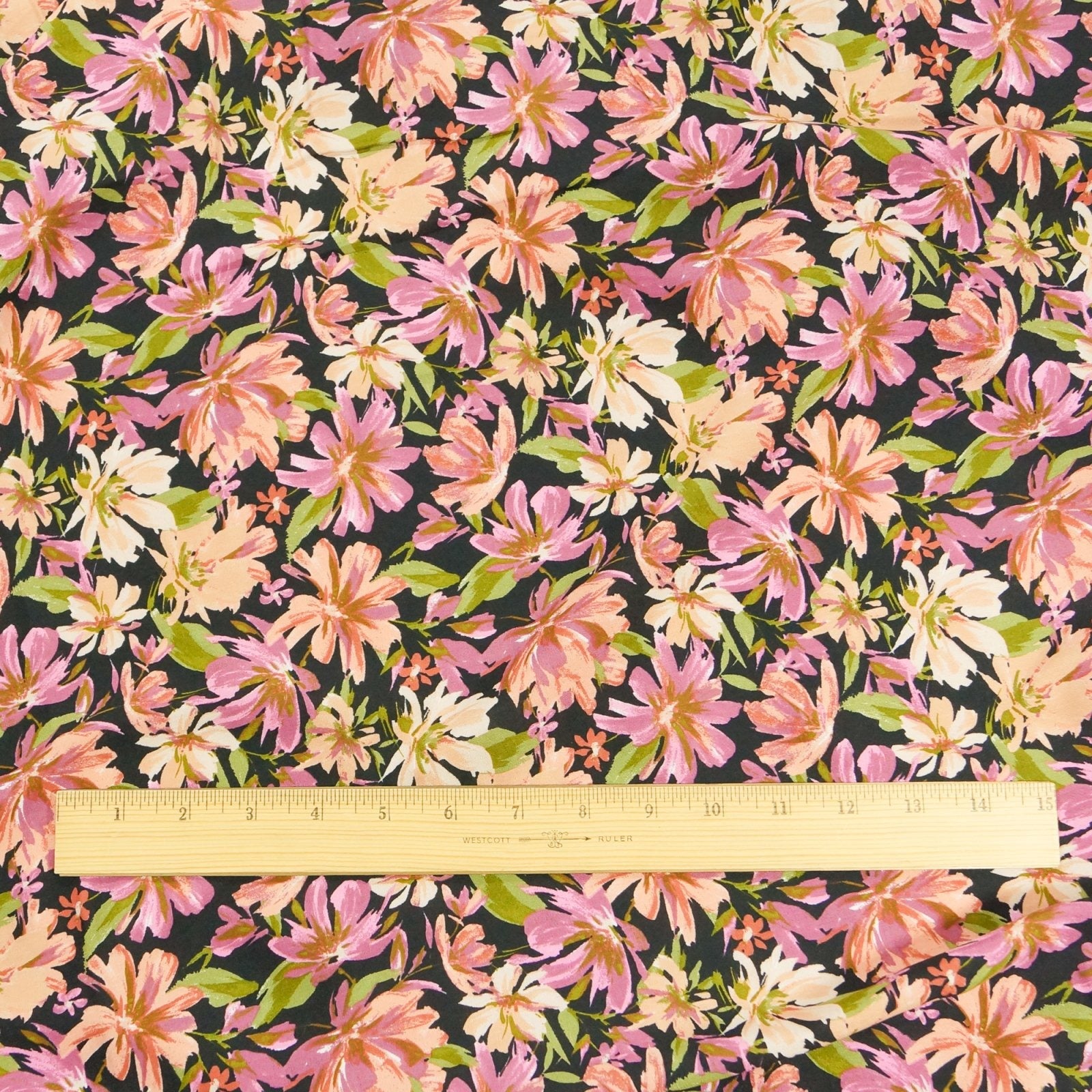 Bring a soft, romantic touch to your sewing projects with the Rayon Poplin - Dusty Rose & Peach Floral. This luxurious 100% rayon fabric offers a delicate drape and lightweight feel, perfect for blouses, dresses, skirts, and flowing summer garments. Inspired by the soft shades of rosé sangria, this floral print blends dusty rose, peach, cream, and subtle mauve tones to create a versatile and elegant look. Its smooth texture and vibrant floral pattern make it ideal for adding a feminine and sophisticated flair to any project.
