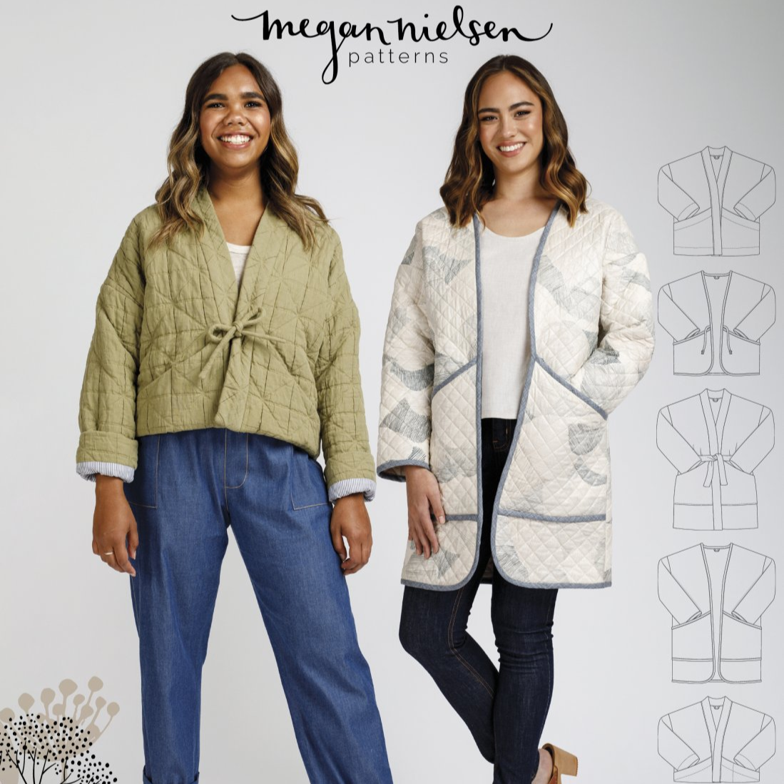The Megan Nielsen Patterns - Hovea sewing pattern is a versatile loose-fit, drop-shoulder jacket and coat designed for layering and style. With multiple lengths, optional quilting, and belt or tie closures, Hovea offers a modern outerwear solution suitable for a variety of fabrics. Feature pockets, unlined, fully lined, or quilted options allow sewists to create customized jackets or coats tailored to their preference, combining practicality with fashion-forward design.