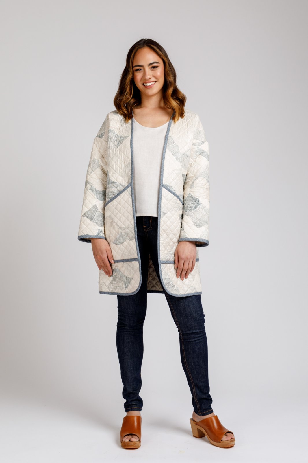 The Megan Nielsen Hovea pattern is a stylish, customizable jacket and coat sewing pattern featuring multiple lengths, quilted or unlined options, and practical feature pockets. Perfect for layering, this pattern works beautifully with light to medium weight fabrics and pre-quilted materials for versatile outerwear creations.