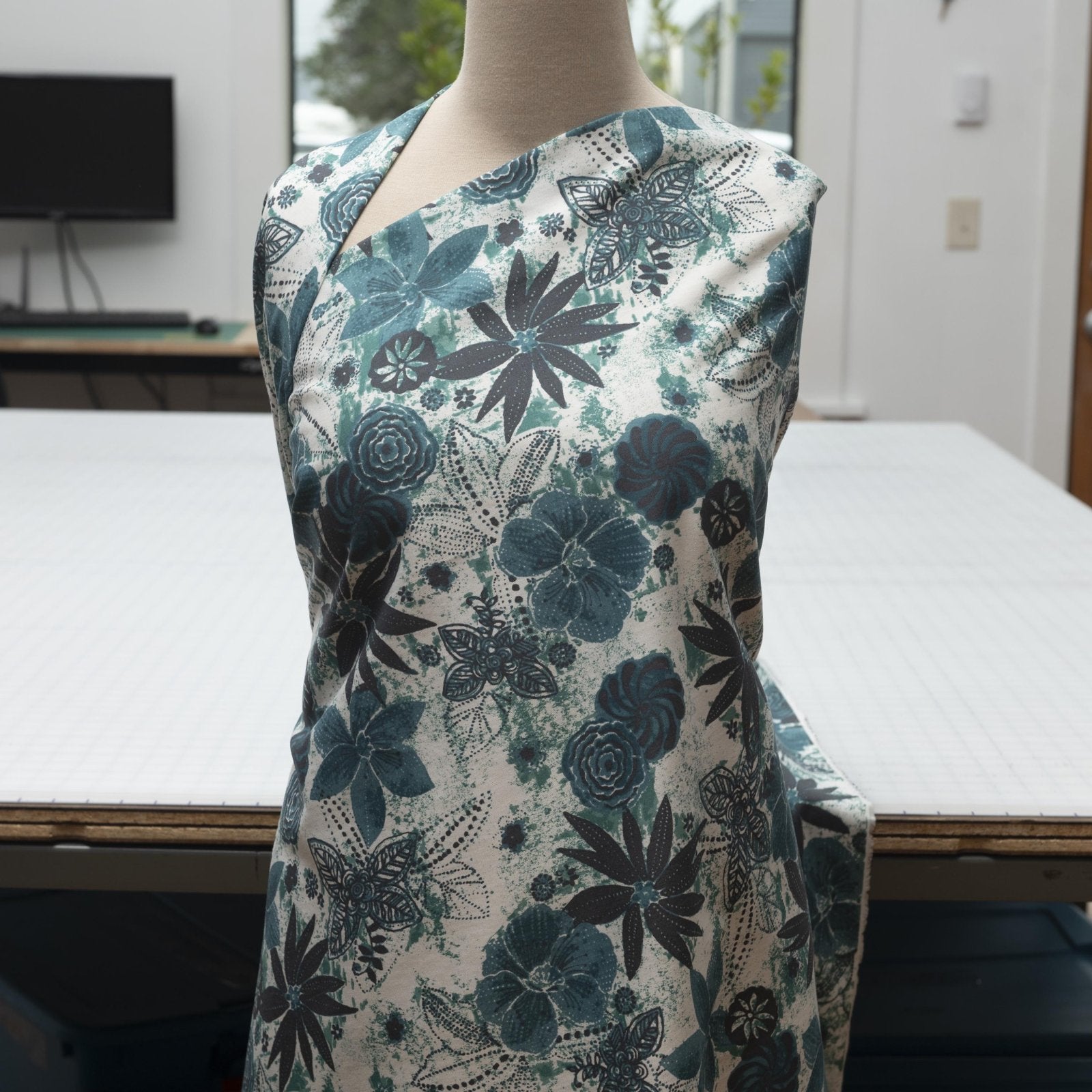 Cotton Twill - Teal Reef Print is a versatile, medium-weight cotton fabric that blends strength with style. With its bold teal pattern and structured drape, it’s perfect for creating standout pants, skirts, and jackets. Limited in supply, this deadstock fabric is a must-have for makers seeking unique, high-quality materials.