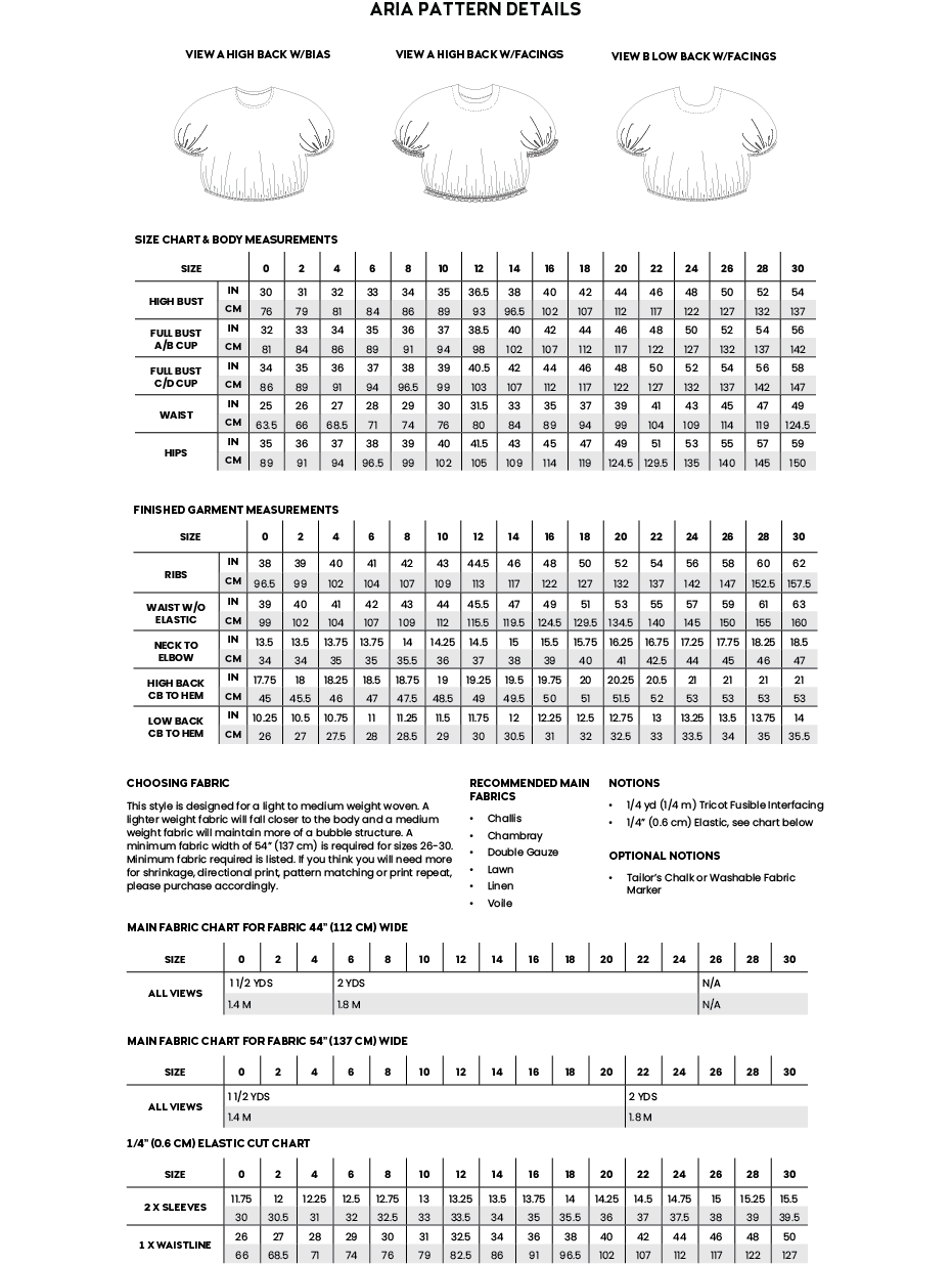 Elevate your handmade wardrobe with The Aria by Chalk & Notch—a playful yet elegant bubble-shaped woven top featuring unique design details. This pattern includes two stylish views: View A offers a high back with bias or facing neckline, while View B features a low back with ties and square back facing for a flirty twist. Both views include optional narrow or cropped ruffles at the sleeves and bodice, adding a touch of femininity. Designed for light to medium-weight wovens like challis, chambray, or linen, The Aria drapes beautifully or holds structure, depending on your fabric choice. With a size range of 0-30 and two bust cup options, this pattern ensures a customized, flattering fit for every body.