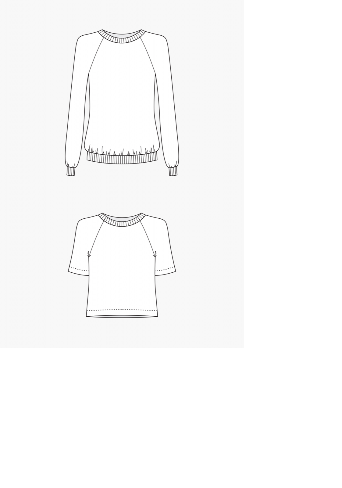 The Grainline Studio Linden Sweatshirt Pattern is a modern take on the classic sweatshirt with a scooped neckline and relaxed fit. View A features long sleeves with cuffs and falls to mid-hip, while View B has short sleeves and hits at the high hip. With mix-and-match options for sleeve and body lengths, you can create the perfect sweatshirt for any occasion. Designed for medium-weight knits with at least 20% stretch, including French terry, sweatshirt fleece, sweater knits, and jersey. Extra fabric may be needed for plaids, stripes, or one-way print designs. Available in women’s sizes 0–18.
