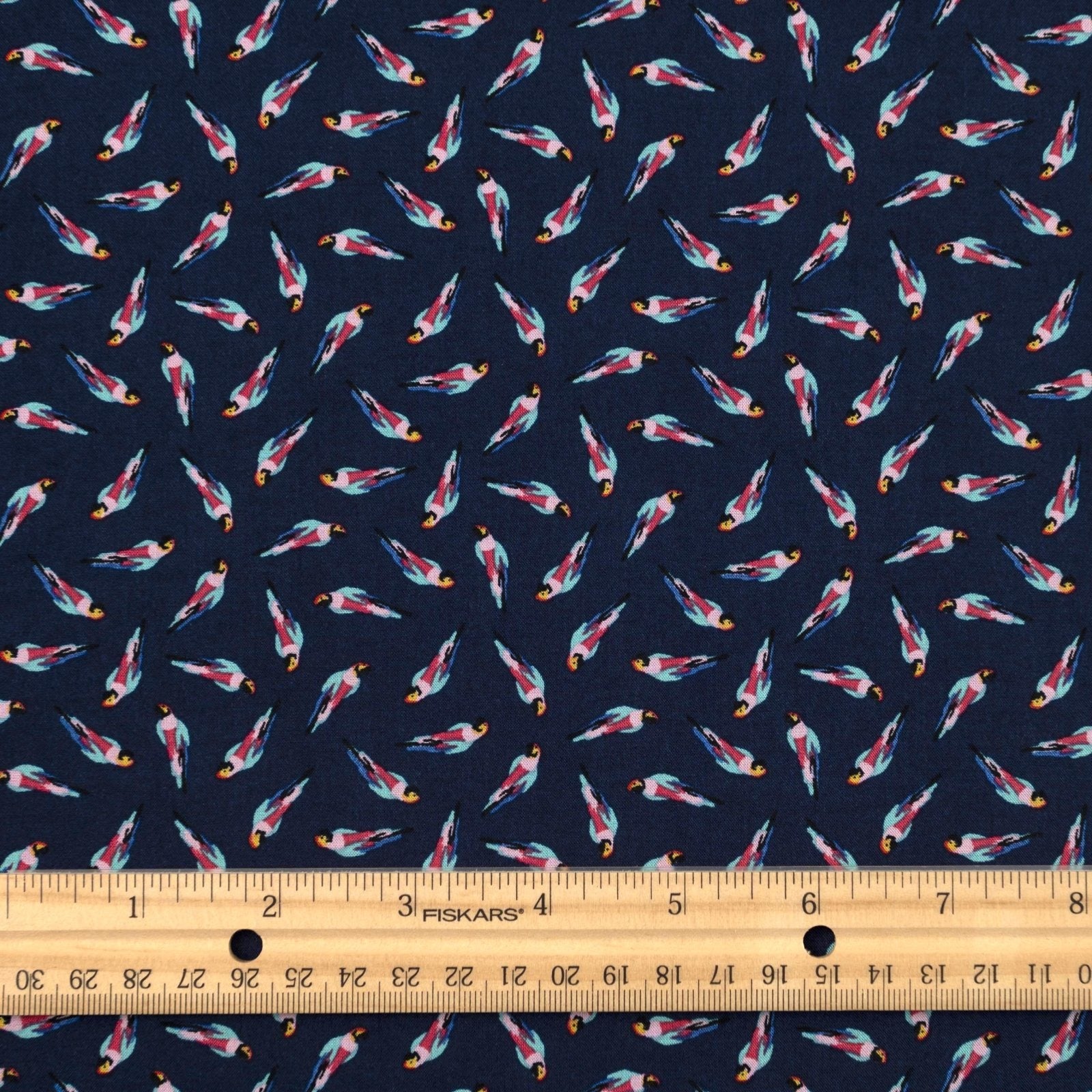 Bring a touch of tropical whimsy to your summer wardrobe with our Viscose Challis - "Navy Parrot Party". This lightweight, breathable fabric features a playful scattering of tiny parrots perched on a rich navy background, perfect for crafting breezy skirts, flowing maxi dresses, or comfy pajama pants. Its soft drape and fluid movement make it ideal for garments that sway and flutter with every step. Each parrot measures approximately ¾ inch, adding a charming, detailed accent to your creations.