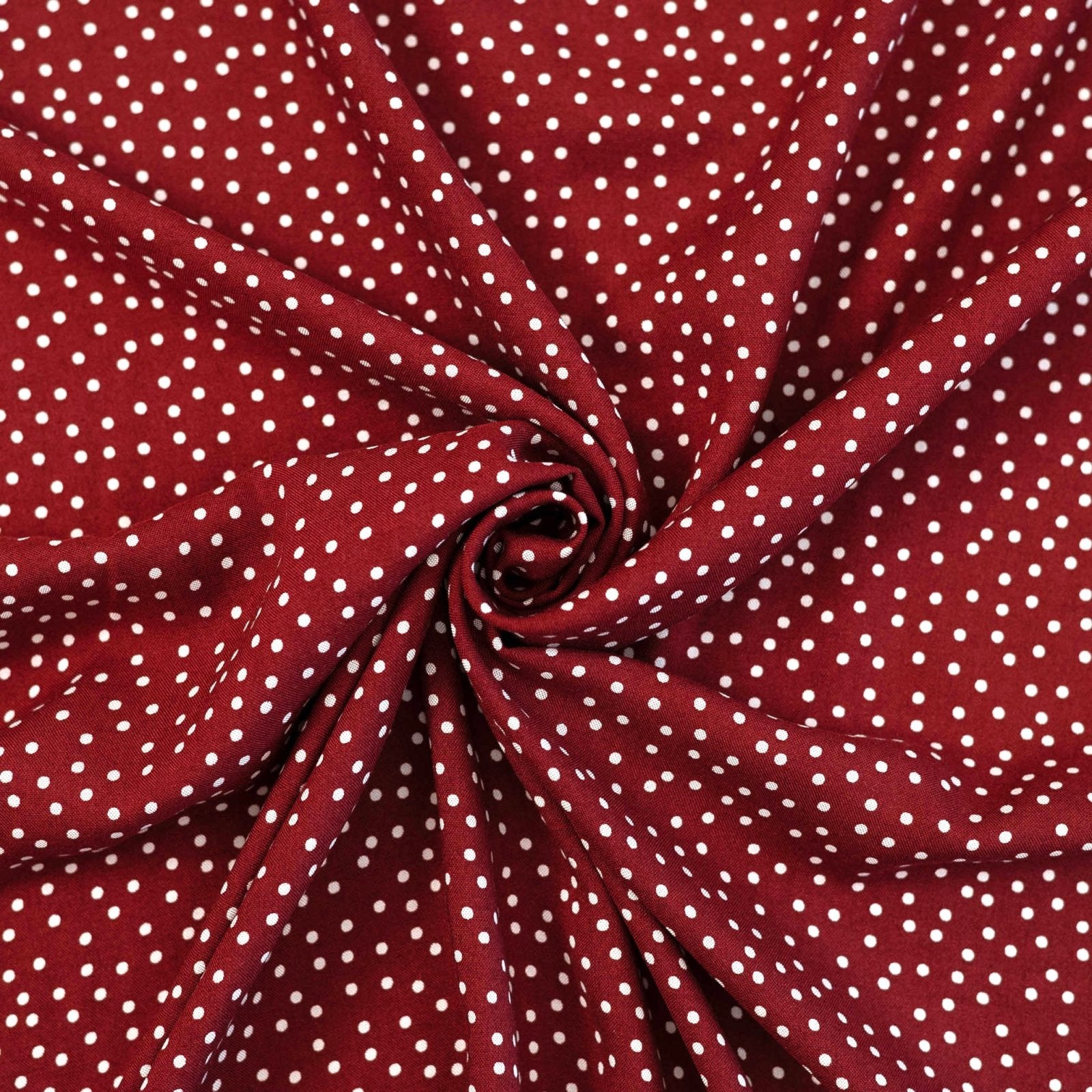 Add a touch of vintage-inspired charm to your handmade creations with our Burgundy & White Polka Dot Rayon Challis. This 100% rayon fabric features a rich burgundy base adorned with classic white polka dots, creating a playful yet sophisticated look. Known for its ultra-soft, lightweight, and breathable qualities, this fabric offers a beautiful fluid drape that’s perfect for flirty dresses, breezy blouses, swishy skirts, and wide-leg pants. Ideal for warm-weather wear, this versatile fabric combines comfort and style effortlessly, making it a must-have for your sewing projects.