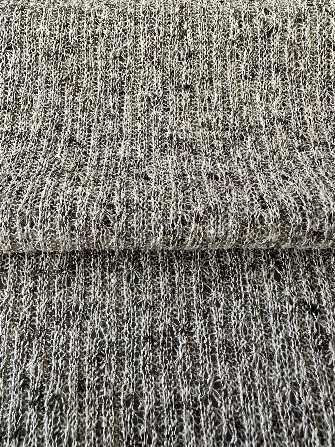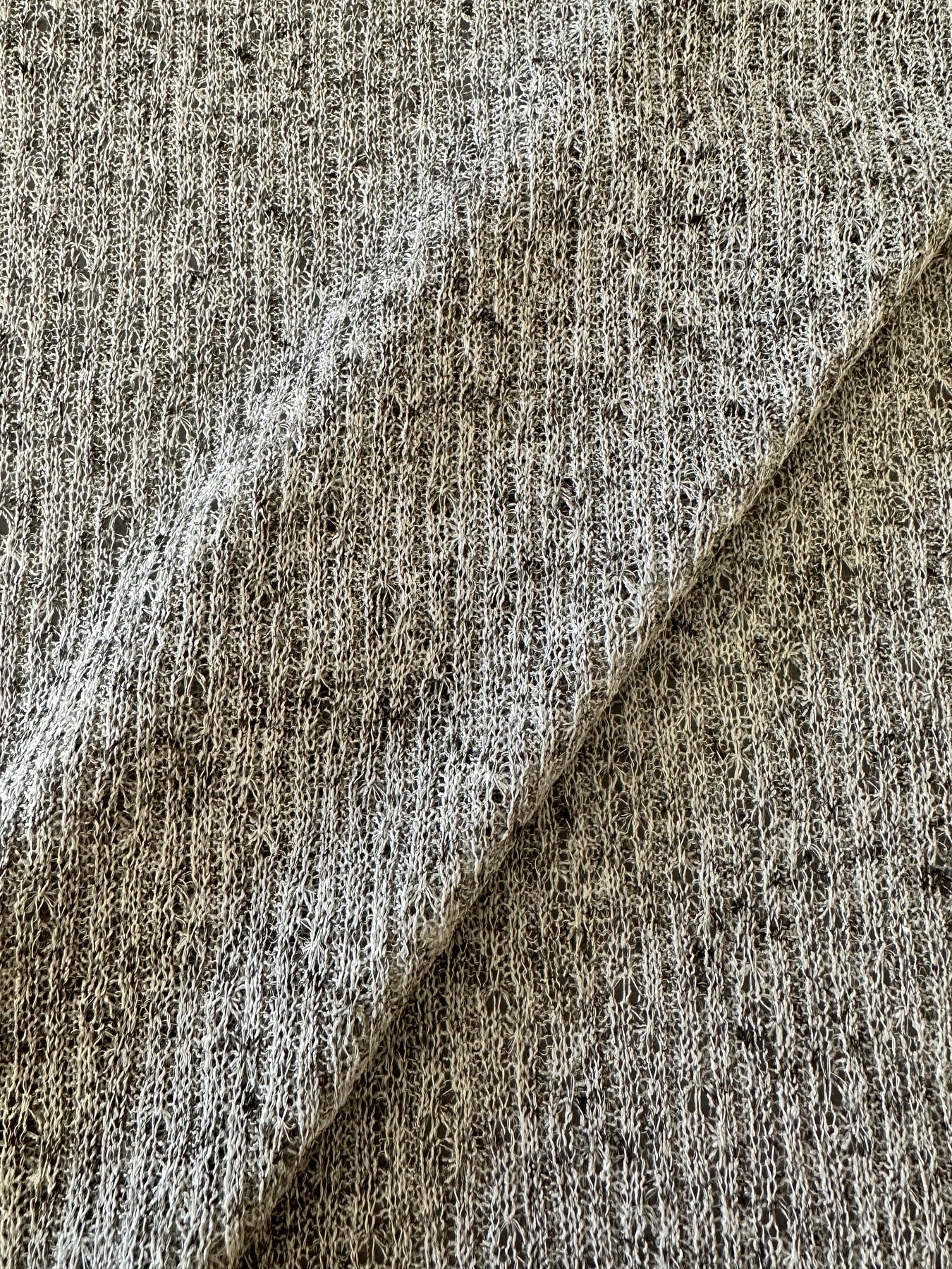 A soft and breezy essential, this Light Grey Sweater Knit is a timeless neutral with modern ease. The open weave keeps things light and breathable, while the subtle linen texture adds depth and interest. Slightly sheer and lightweight, this knit is best layered—perfect for transitional weather and easygoing wardrobe staples.
