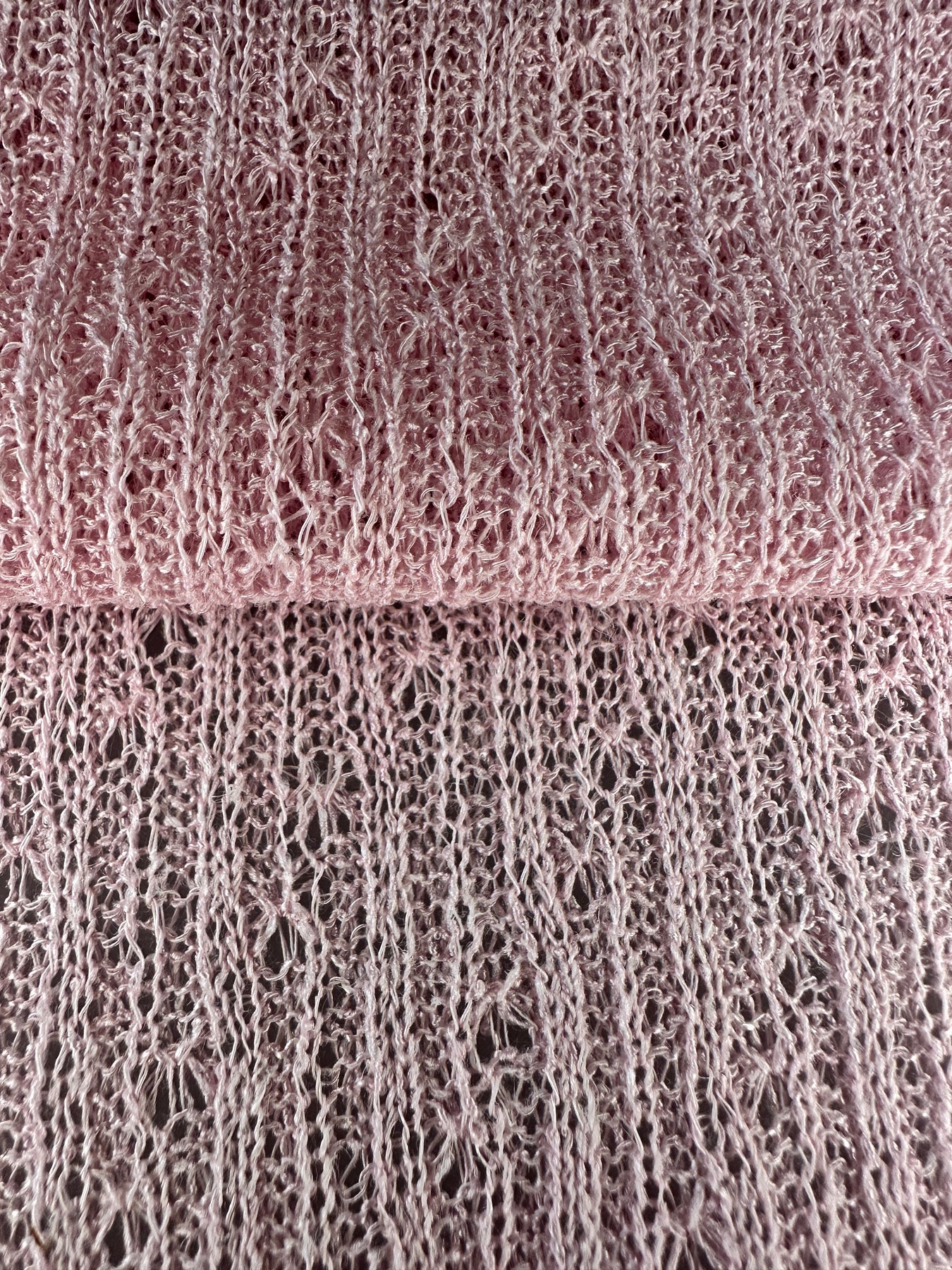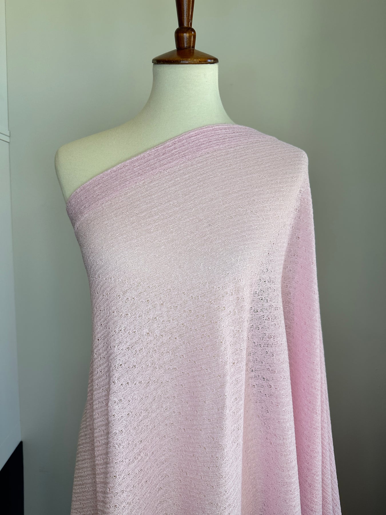 Softly feminine with a vintage flair, this Pale Pink Sweater Knit adds warmth and elegance to your layering game. The lightweight 6 oz knit is breathable and semi-sheer, making it perfect for oversized sweaters, cardigans, or open-knit tops worn with a comfy base layer. The linen content brings a gentle texture to the fabric, giving it a slightly rustic feel that adds personality to every project.