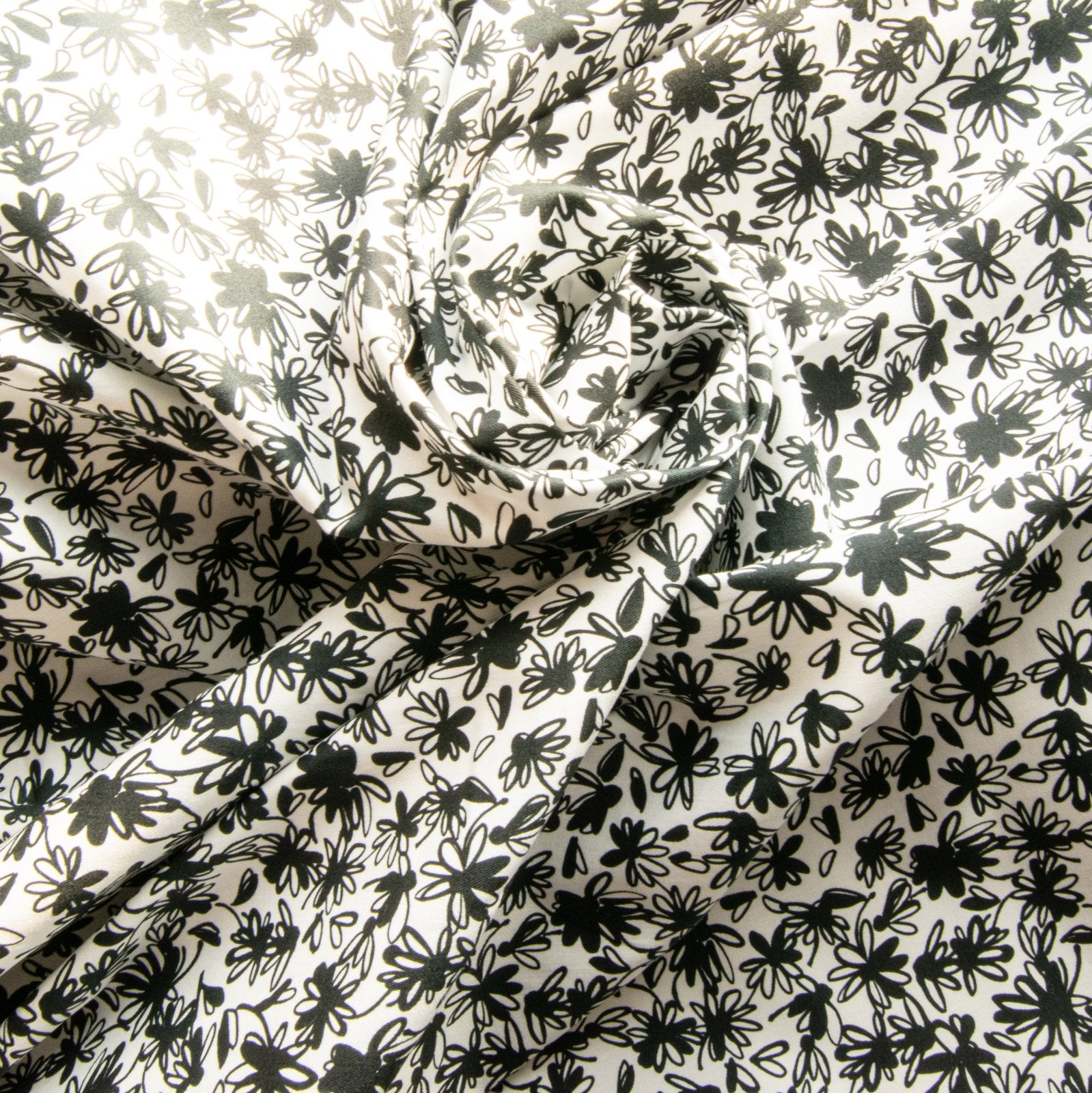 This "Black and White Floral" French poplin is a wardrobe essential that blends sophistication and wearability. The 4% elastane content ensures comfortable movement without compromising the fabric's elegant drape, while the high-quality cotton provides durability and easy care. Perfect for creating statement blouses, wrap dresses, or stylish skirts, this fabric adds Parisian chic to any project. The monochromatic color scheme makes it endlessly versatile for both professional and casual wear. Limited deadstock availability means this fabric won't last - sewists know quality like this disappears fast!French Cotton Poplin - "Black and White Floral"