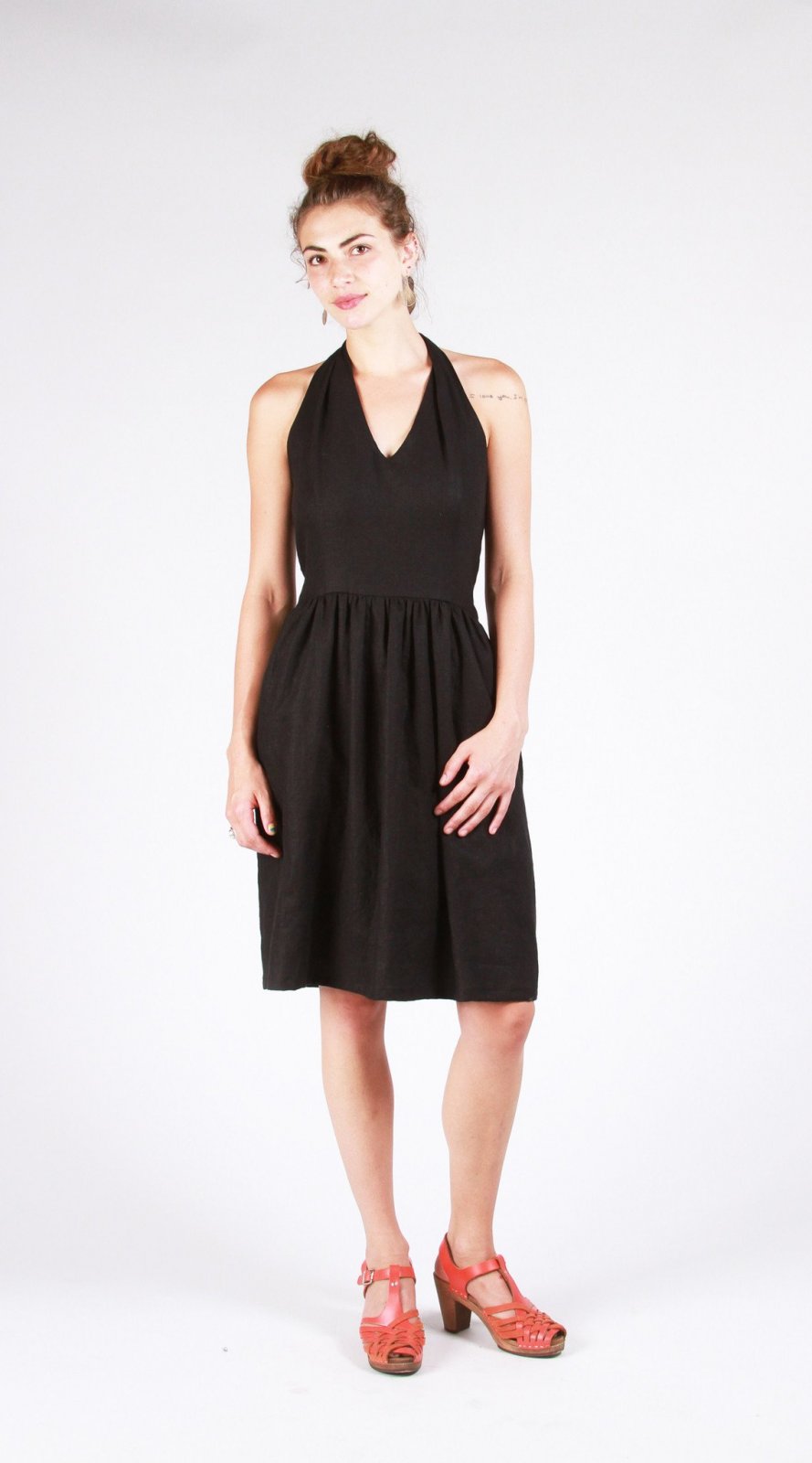 The Sew House Seven - Rose City Halter Dress Pattern is a classic summer dress designed for style and comfort. Featuring a fitted, lined halter bodice with bust darts, neck ties, and an invisible side zipper, this pattern ensures a flattering fit. Choose between two skirt options: a gathered skirt with in-seam pockets for a playful look or an A-line skirt with patch pockets for a clean, timeless silhouette. Ideal for light to medium-weight fabrics with a crisp hand, such as cotton lawn, linen, chambray, gingham, and taffeta, the Rose City Halter Dress is perfect for creating breezy, stylish summer wardrobe staples. Available in sizes 0–20.