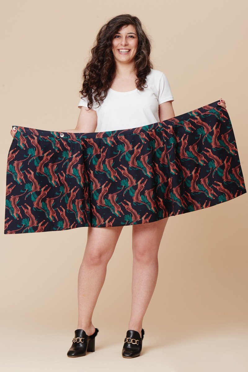 Deer and Doe Agave Skirt sewing pattern with high-waist, asymmetrical panels, reversible or facing finish, sizes 34–46