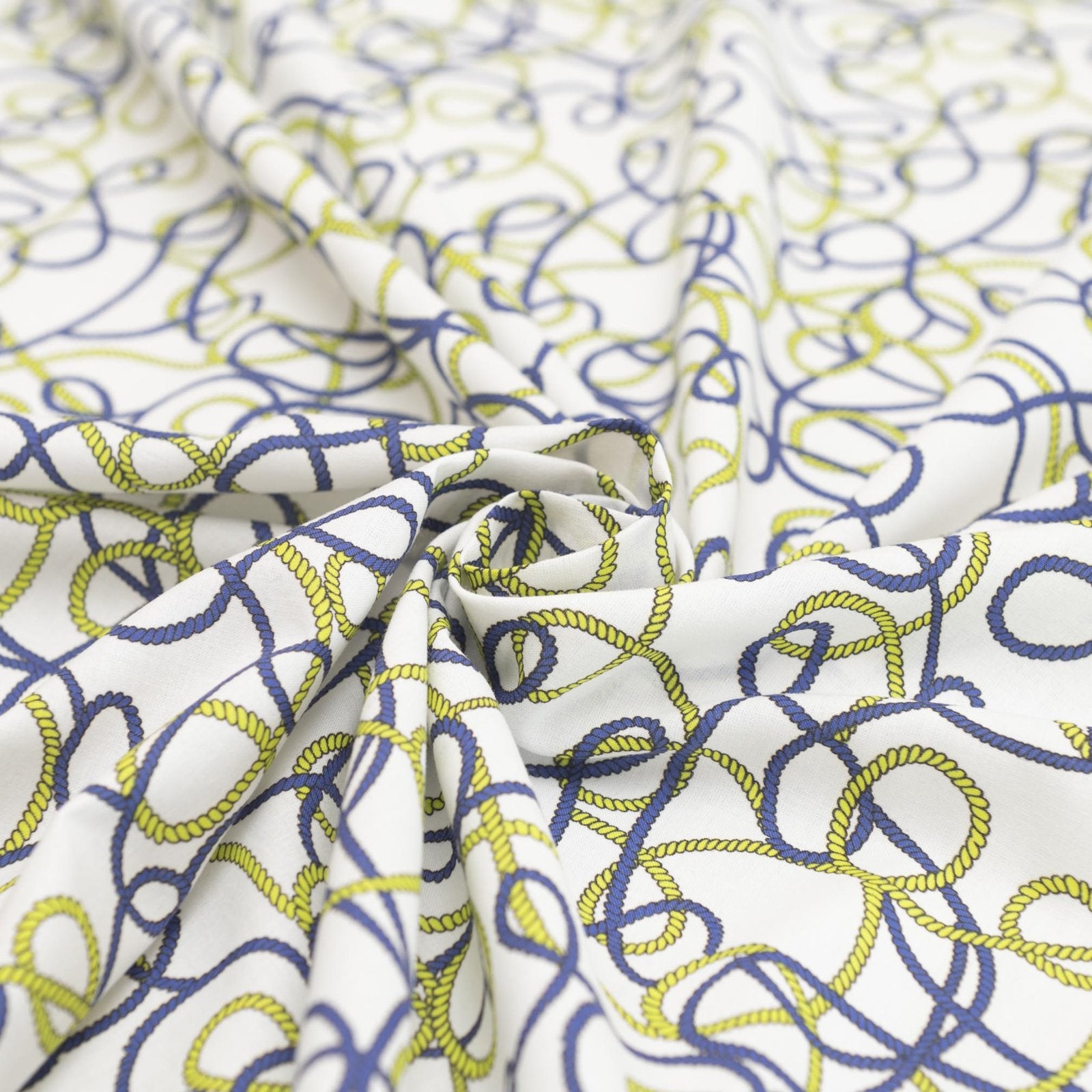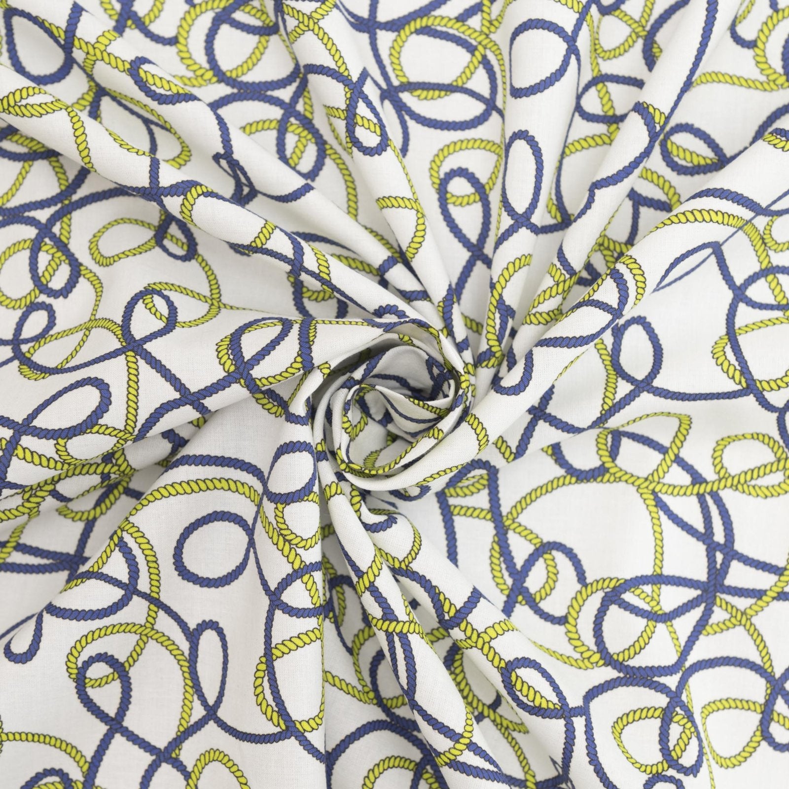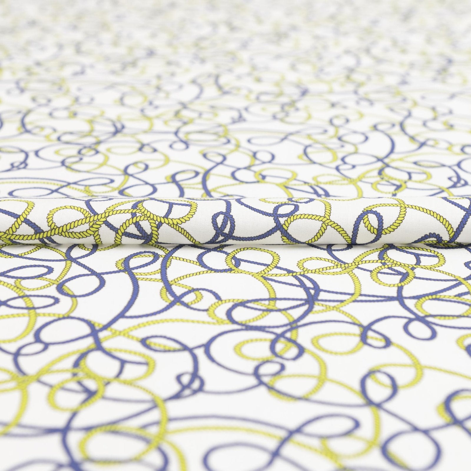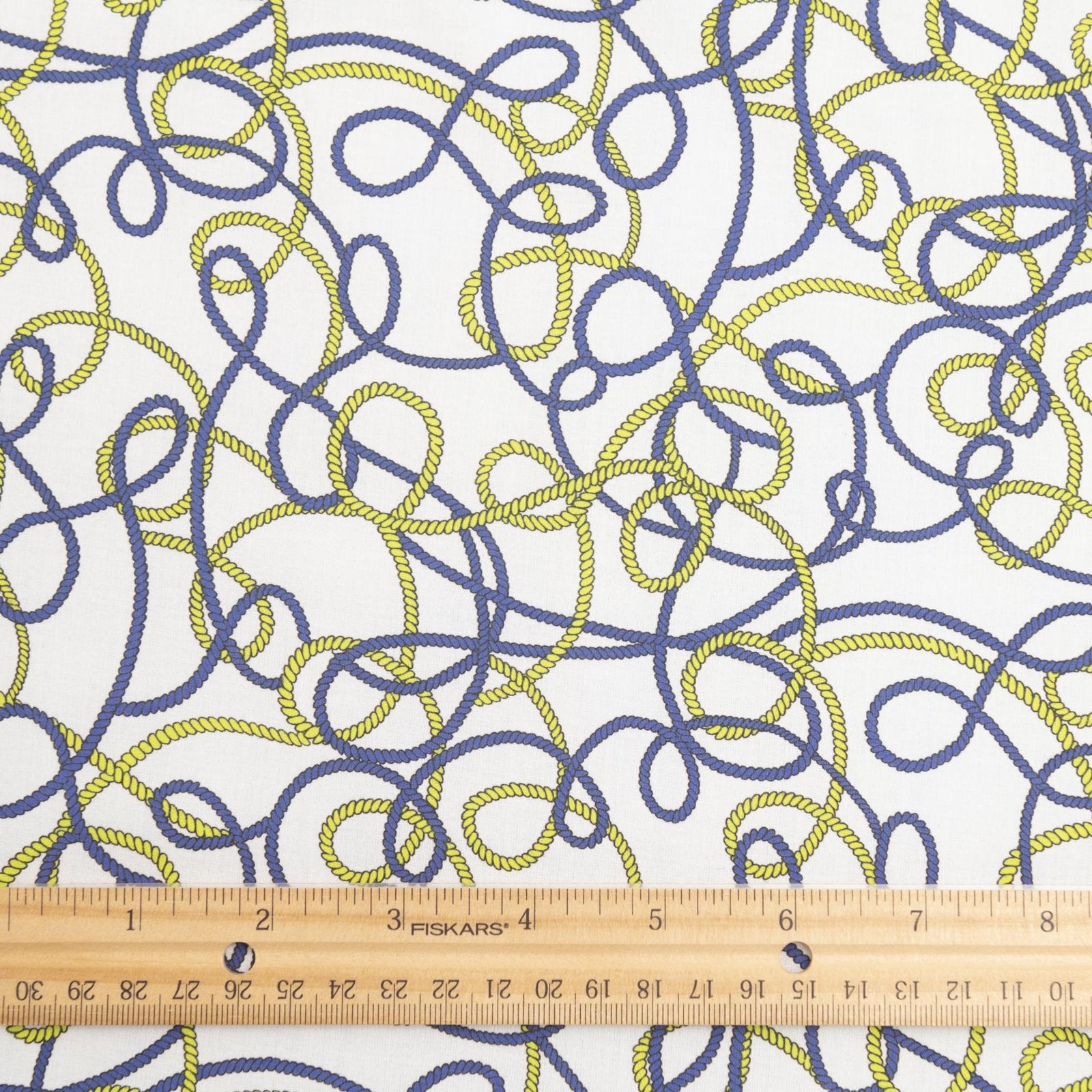 Set sail with Cotton Poplin - "Howdy Do in Blue", a crisp Italian deadstock fabric featuring an intricate blue and green rope print on a fresh white background. This 100% premium cotton poplin offers exceptional breathability and a soft, lightweight hand, making it perfect for nautical-inspired shirts, breezy dresses, stylish skirts, and fun summer accessories. Measuring 57" wide, this versatile fabric provides ample material for creative projects while maintaining its vibrant colors and crisp drape wash after wash. As a fashion house deadstock, this unique textile brings designer quality to your sewing projects—but act fast, as this exclusive print won't be restocked!