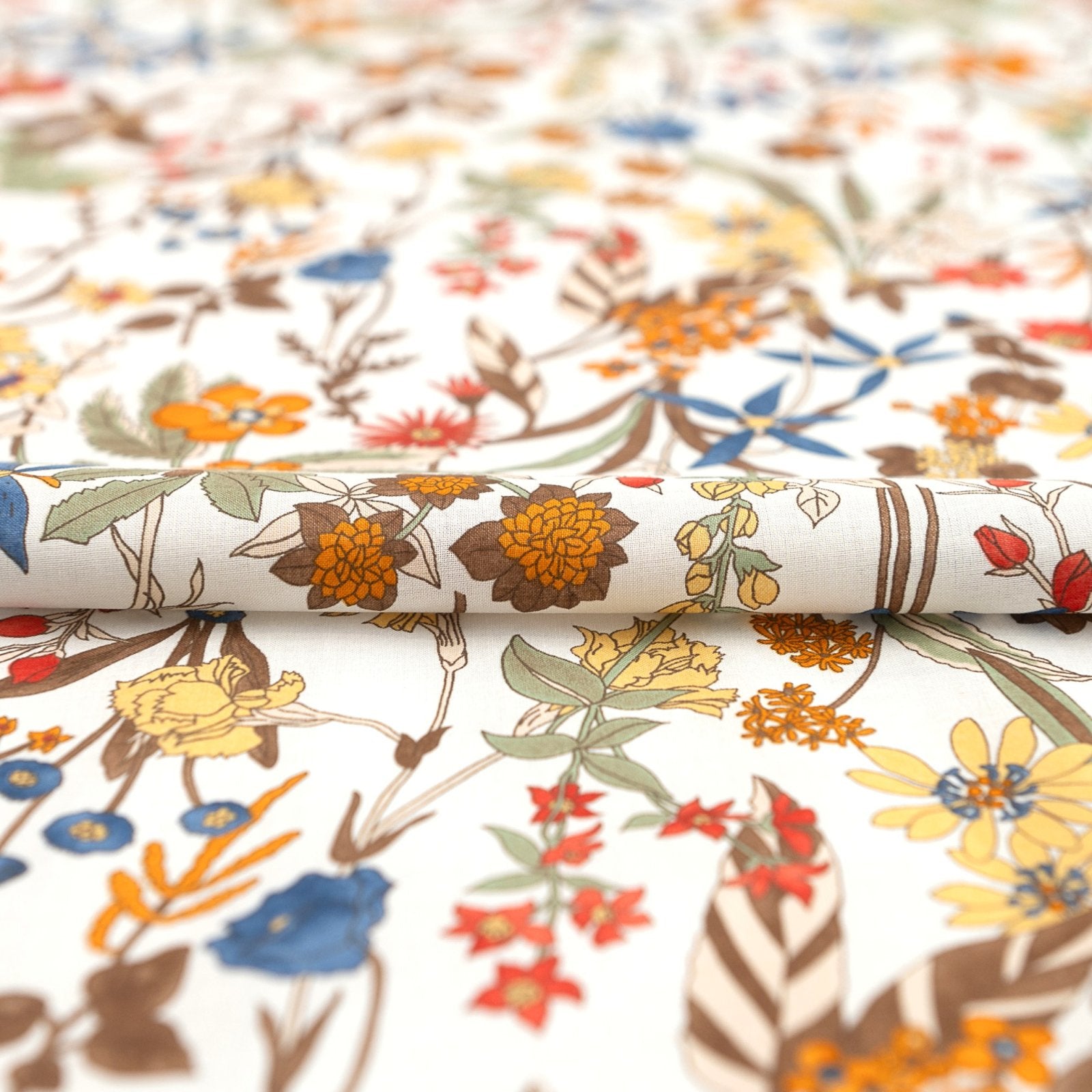 The Lily Spray in Cream Japanese Cotton Poplin by Hokkoh is a versatile, elegant fabric that balances structure with softness. Its nature-inspired floral design makes it the perfect choice for creating stylish, handmade garments full of charm and sophistication.
