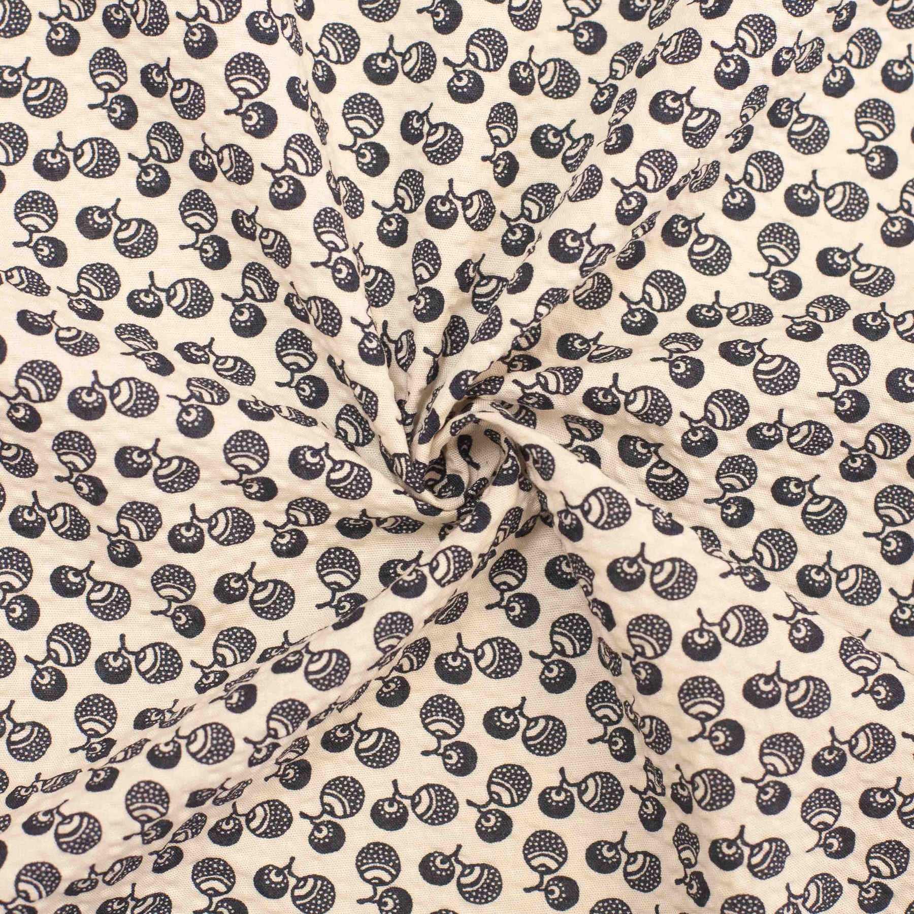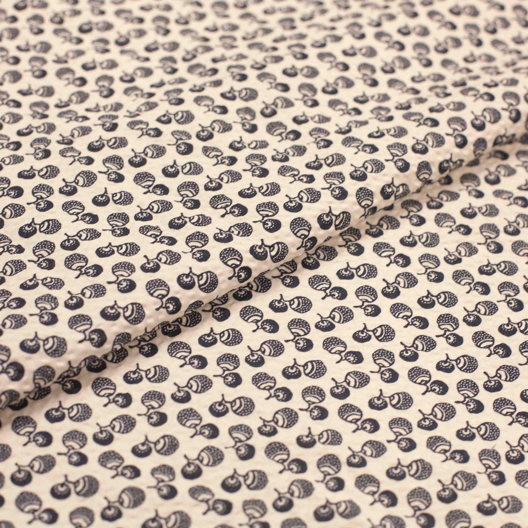 Understated and romantic, this ivory seersucker with a petite acorn print is light, airy, and full of charm. The neutral base makes it ideal for layering or wearing solo, and it pairs beautifully with both muted and bold wardrobe tones. Classic, yet completely unique.