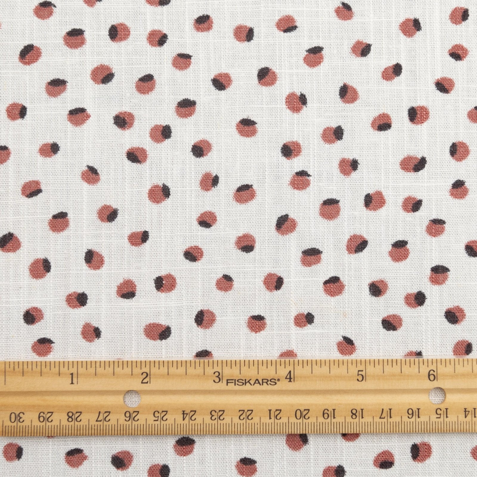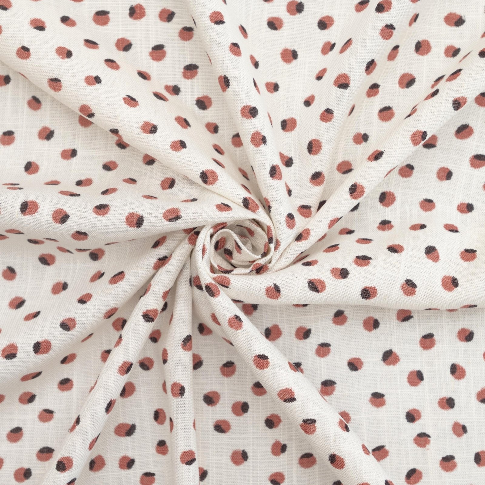 100% Linen – White with Berry and Black Dots combines breathability, durability, and style in a chic patterned fabric. Ideal for both casual and elegant garments, it’s versatile, comfortable, and timeless.