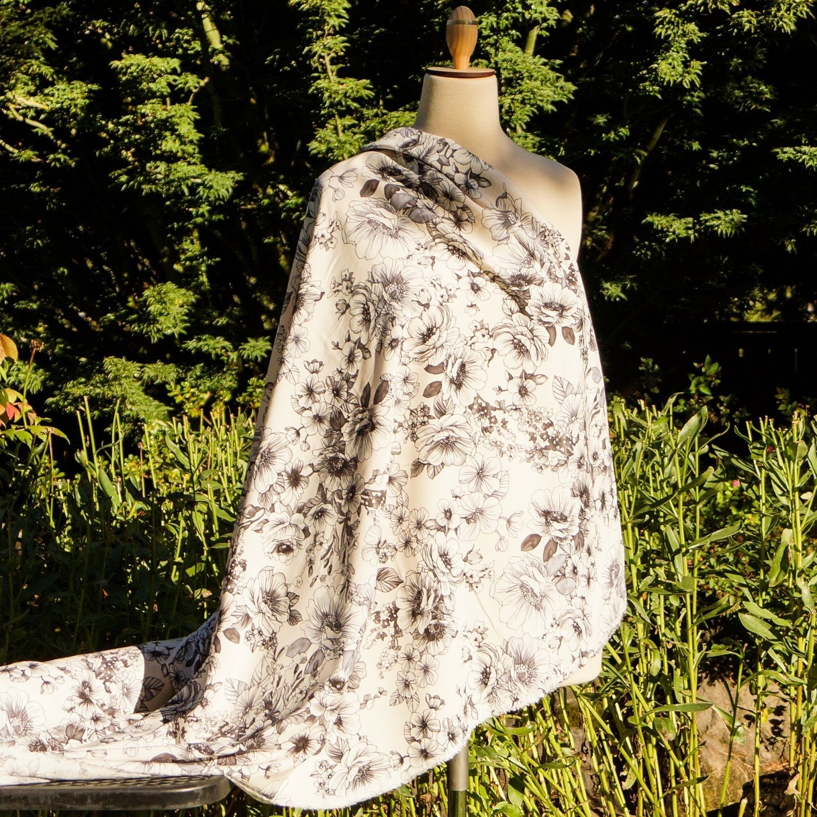 Elevate your sewing projects with our Rayon Challis - Graphite Floral. Crafted from 100% rayon, this soft, lightweight fabric drapes beautifully, making it ideal for flowing dresses, blouses, skirts, and scarves. The elegant grayscale floral pattern on a soft cream background creates a sophisticated and versatile aesthetic that works for both casual and formal occasions. Its airy texture ensures comfort while maintaining a polished look. Perfect for creative makers who love fabrics that feel luxurious yet remain easy to work with, this deadstock fabric brings a touch of fashion-industry exclusivity to your wardrobe creations.