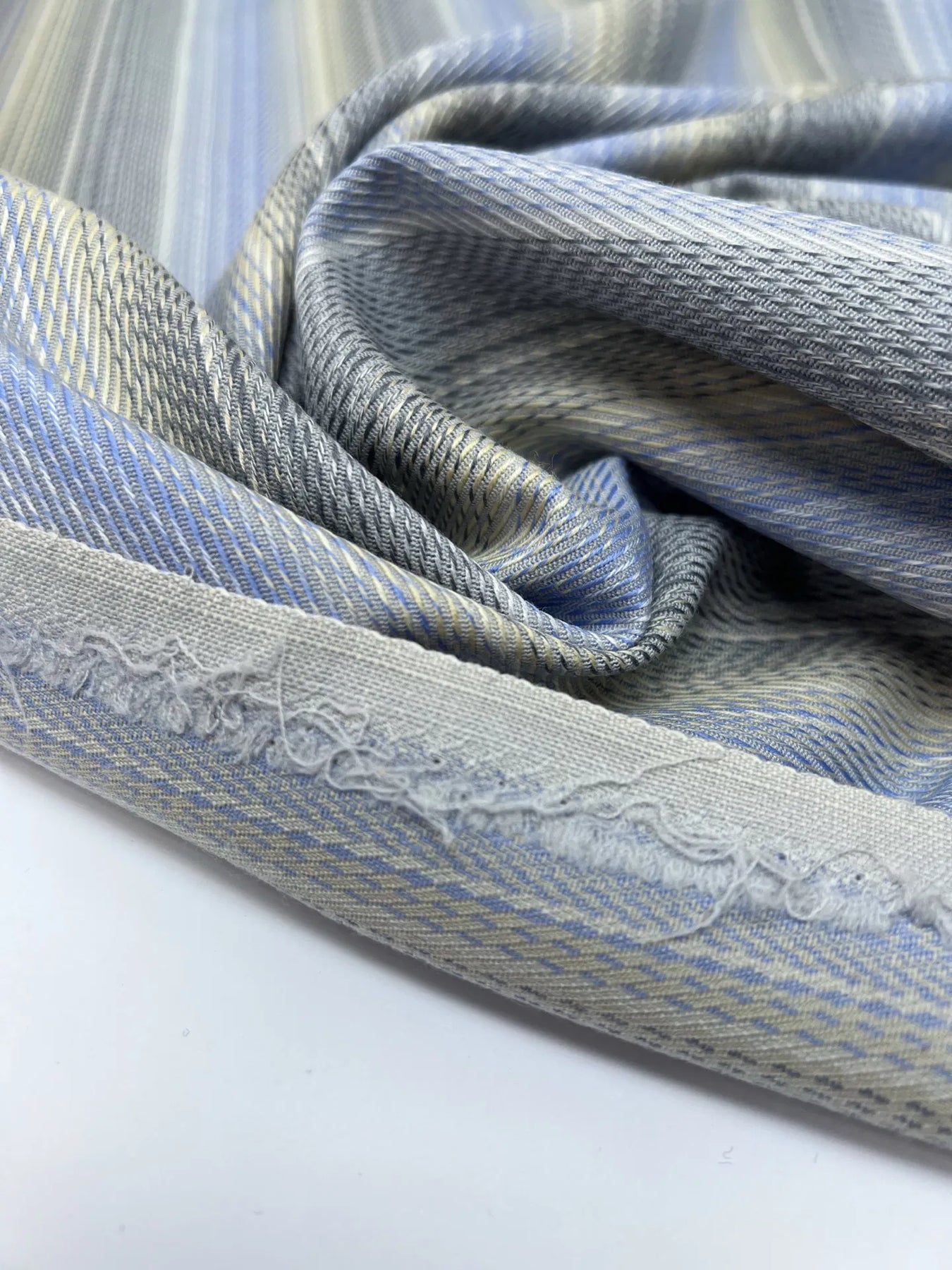 The Wool Suiting - Light Blue and Gray Soft Stripes is a premium fabric made from 100% wool, ideal for creating tailored suits, coats, and other fine apparel. With a width of 60 inches and a soft striped pattern in light blue and gray, it’s a versatile fabric that combines sophistication with comfort. Made in Italy, this fabric is perfect for adding a stylish and professional touch to your wardrobe.