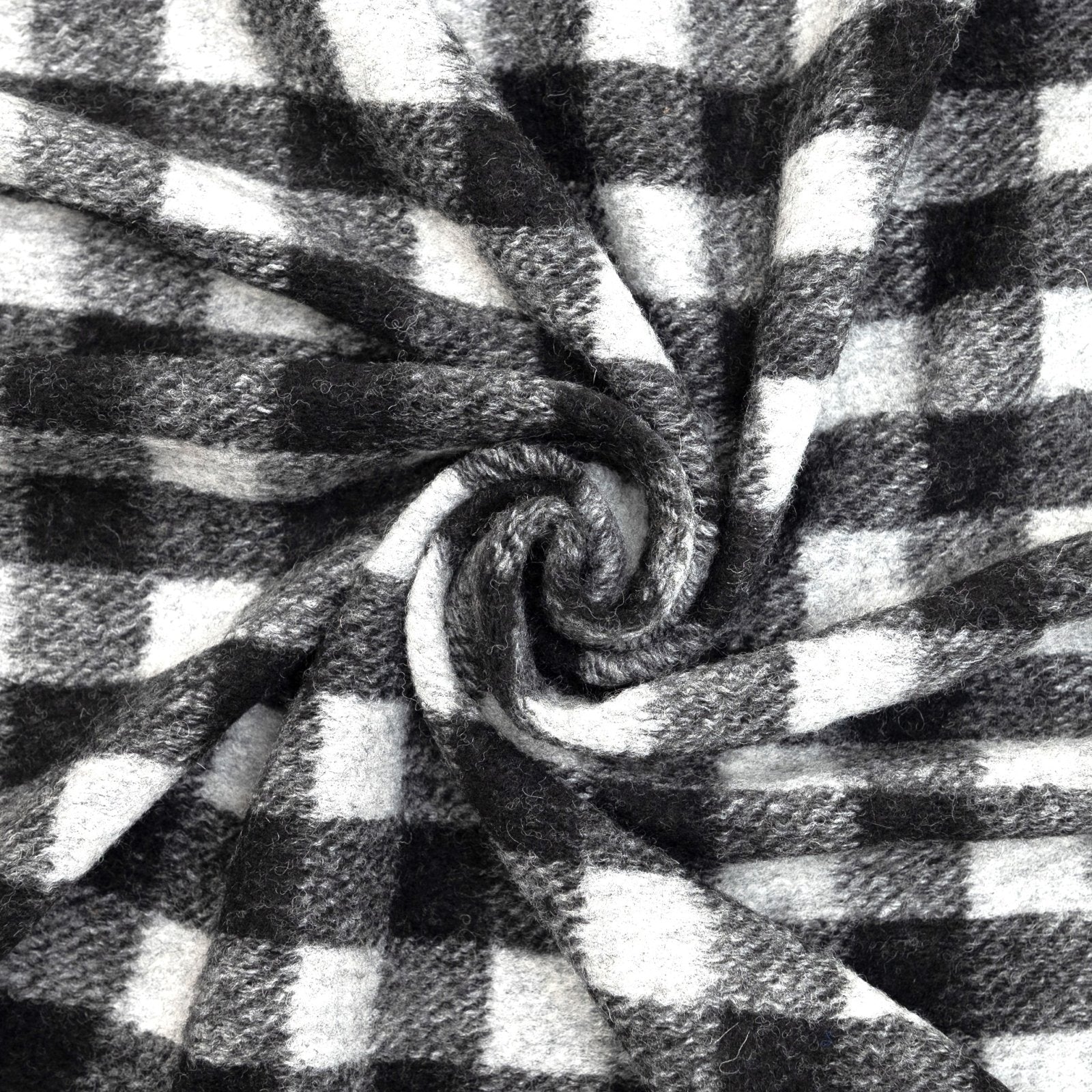 Craft timeless winter essentials with our Boiled Wool in Classic Black & White Buffalo Plaid, an Italian-crafted luxury fabric that blends 80% premium wool with 20% viscose for unbeatable warmth, structure, and style. The bold buffalo plaid pattern in high-contrast black and white creates eye-catching sophistication, perfect for statement coats, tailored jackets, cozy vests, and stylish accessories.
